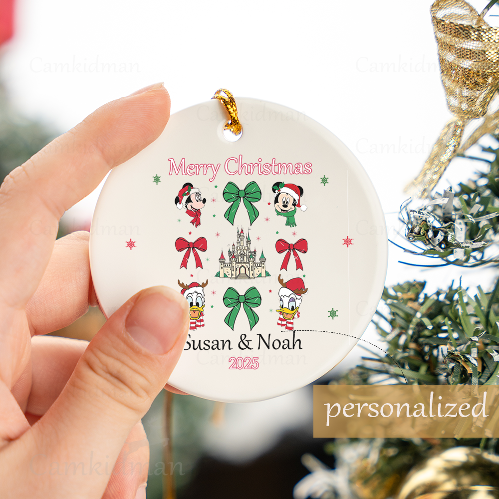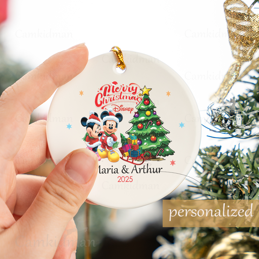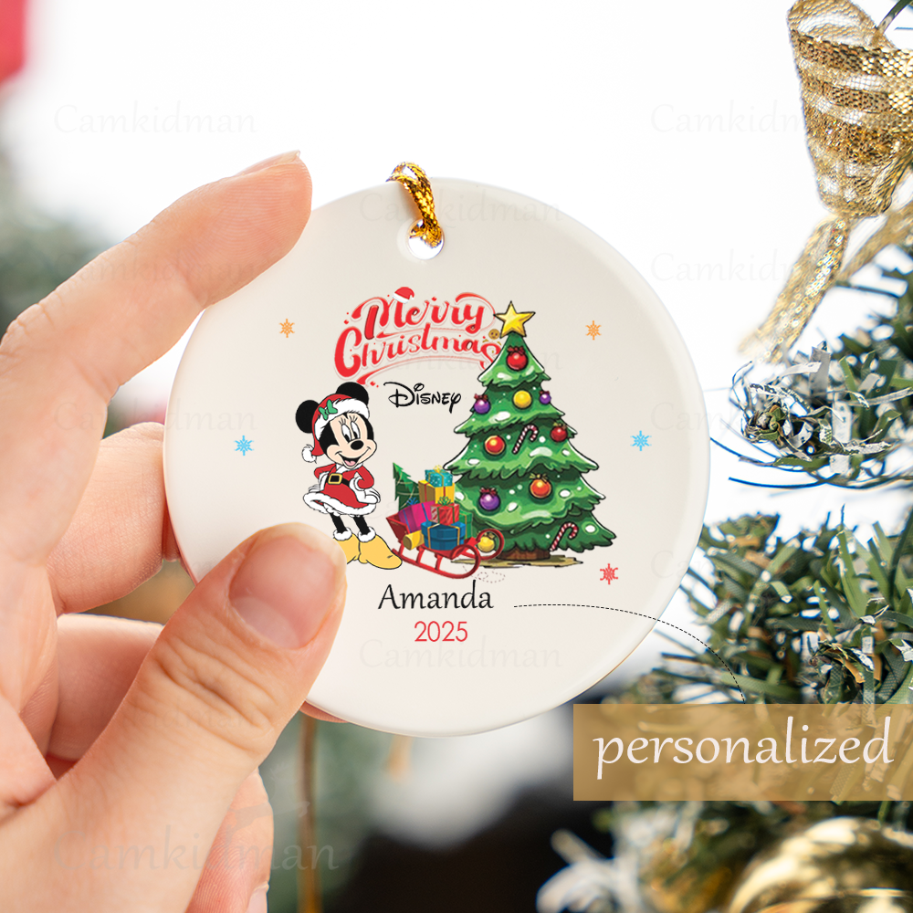 Personalized Name Disney Mickey Mouse Minnie with Christmas Tree Ceramic Ornament Glass Ornament