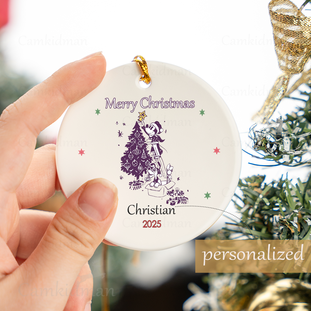 Personalized Name Disney Mickey Mouse Purple Tree Ceramic Ornament Glass Ornament 2025 Glass Christmas Decoration
