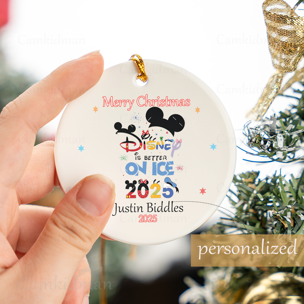 Personalized Name Disney On Ice Mickey 2025 Christmas Ceramic Ornament Glass Ornament tree