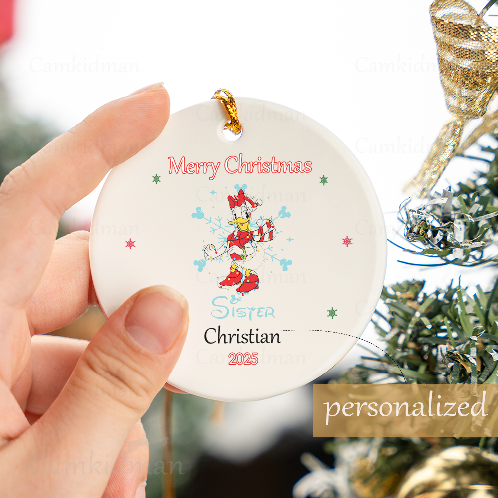 Personalized Name Disney Minnie Mouse Sister 2025 Glass Round Holiday Ornament