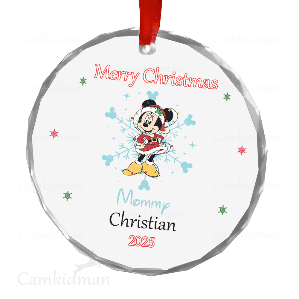 Personalized Name Disney Minnie Mouse Mom 2025 Glass Christmas Ornament Decoration
