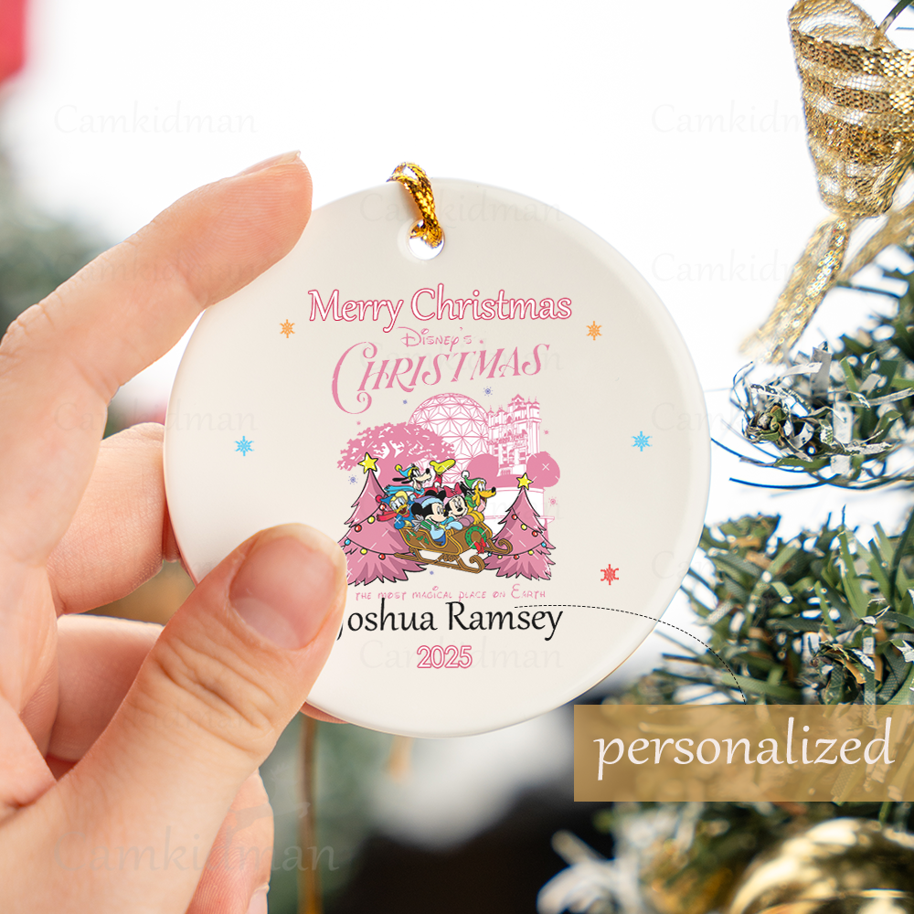 Personalized Name Disney pink Christmas Tree Gifts 2025 Christmas Ceramic Ornament Glass Ornament