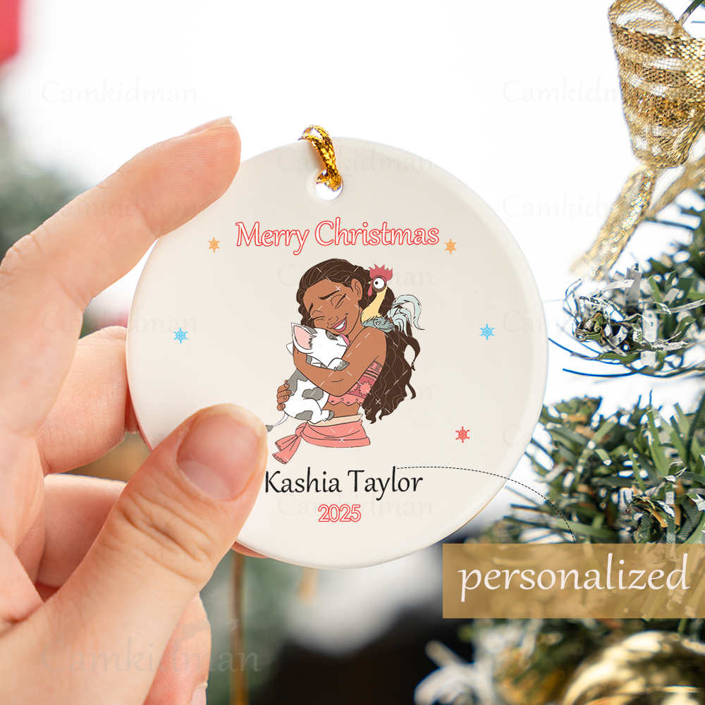 Personalized Name Disney Princess Christmas 2025 Christmas Ceramic Ornament Glass Ornament tree