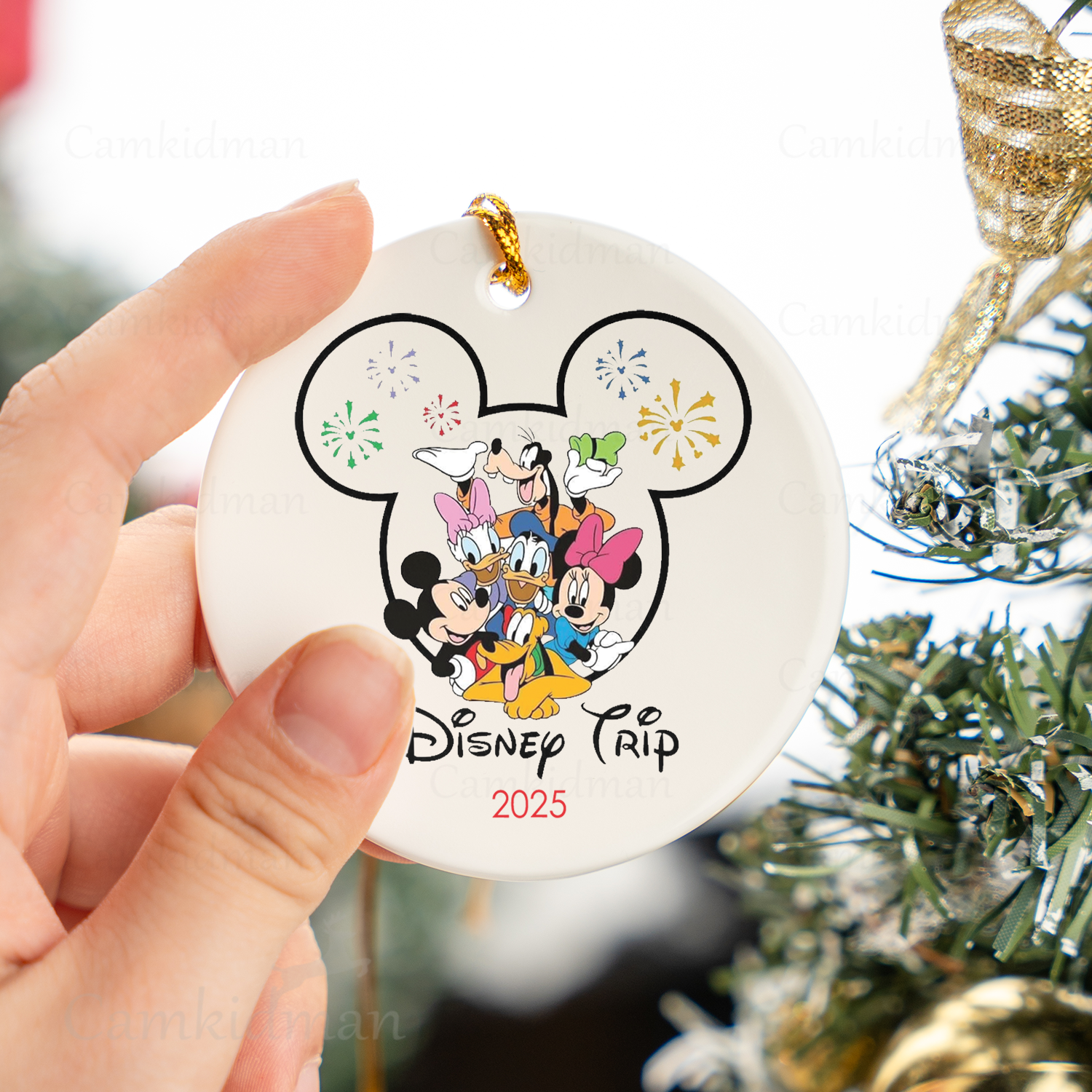 Personalized Name Disney Trip Mickey Minnie 2025 Christmas Ceramic Ornament Glass Ornament gifts family