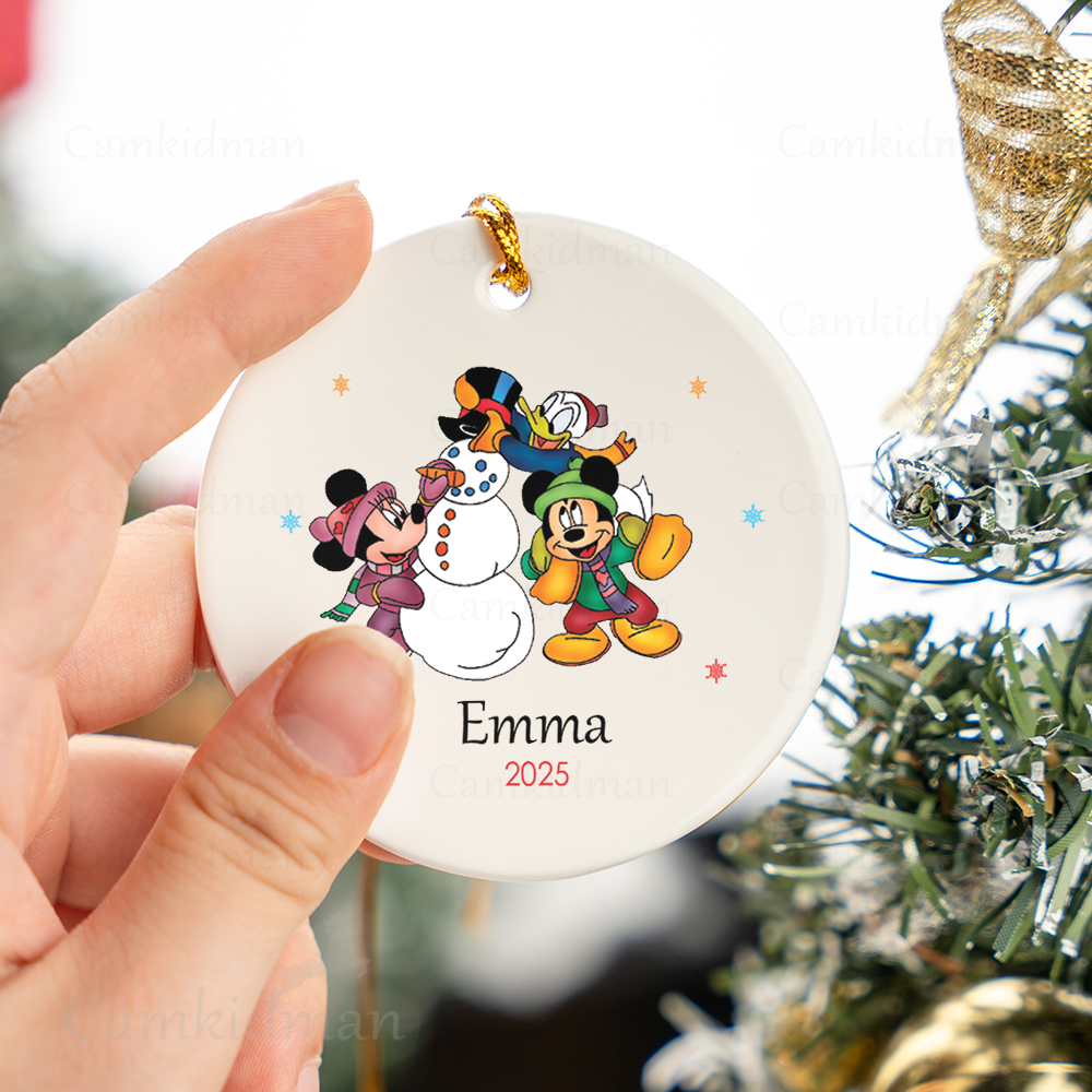Personalized Name Disney Snowman Friends 2025 Christmas Ceramic Ornament Glass Ornament tree