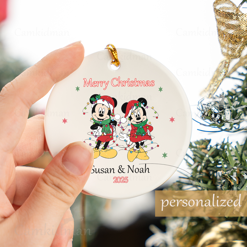 Personalized Name Disney Trip Mickey Minnie 2025 Christmas Glass Ornament gifts family
