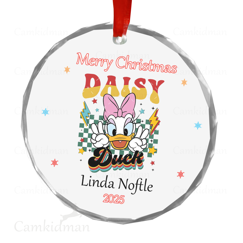 Daisy Duck Personalized Name 2025 Christmas Glass Ornament gifts