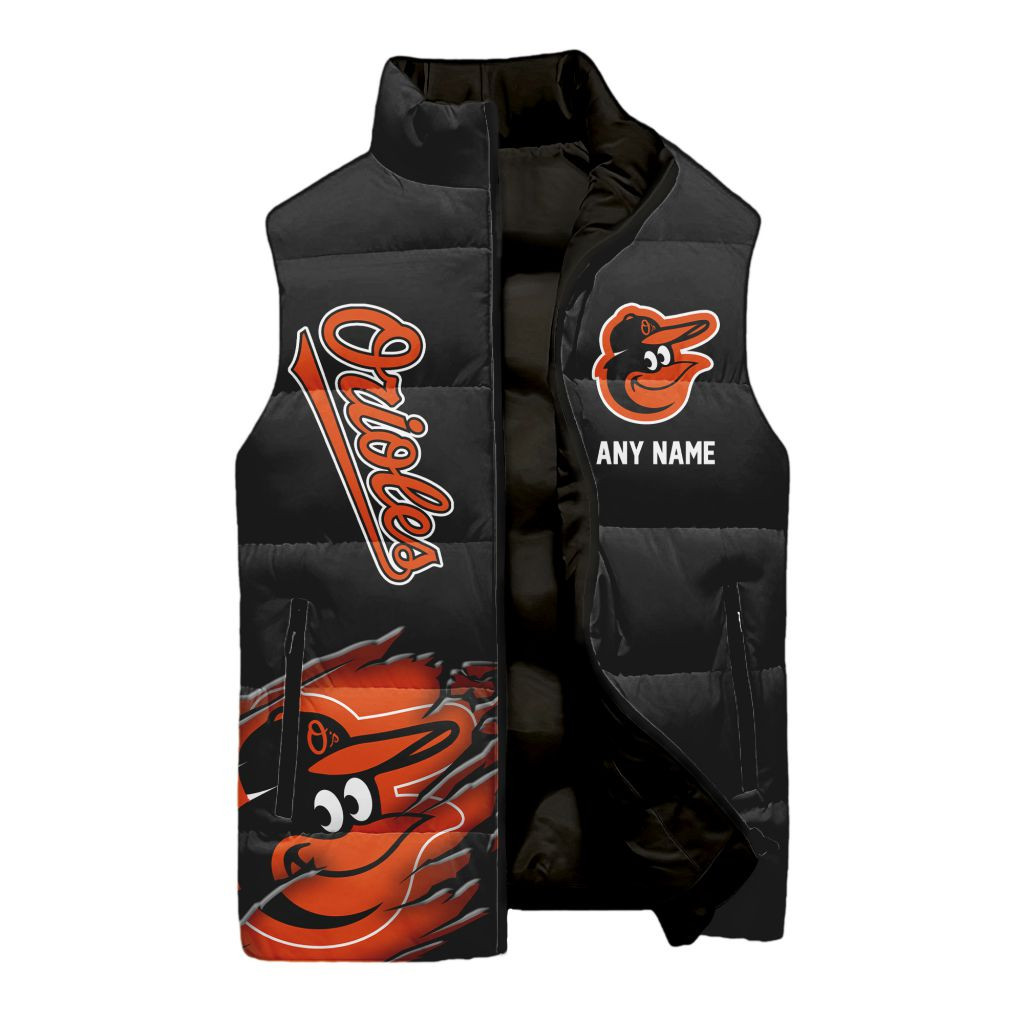 Baltimore Orioles Personalized Name Sleeveless Puffer Jacket