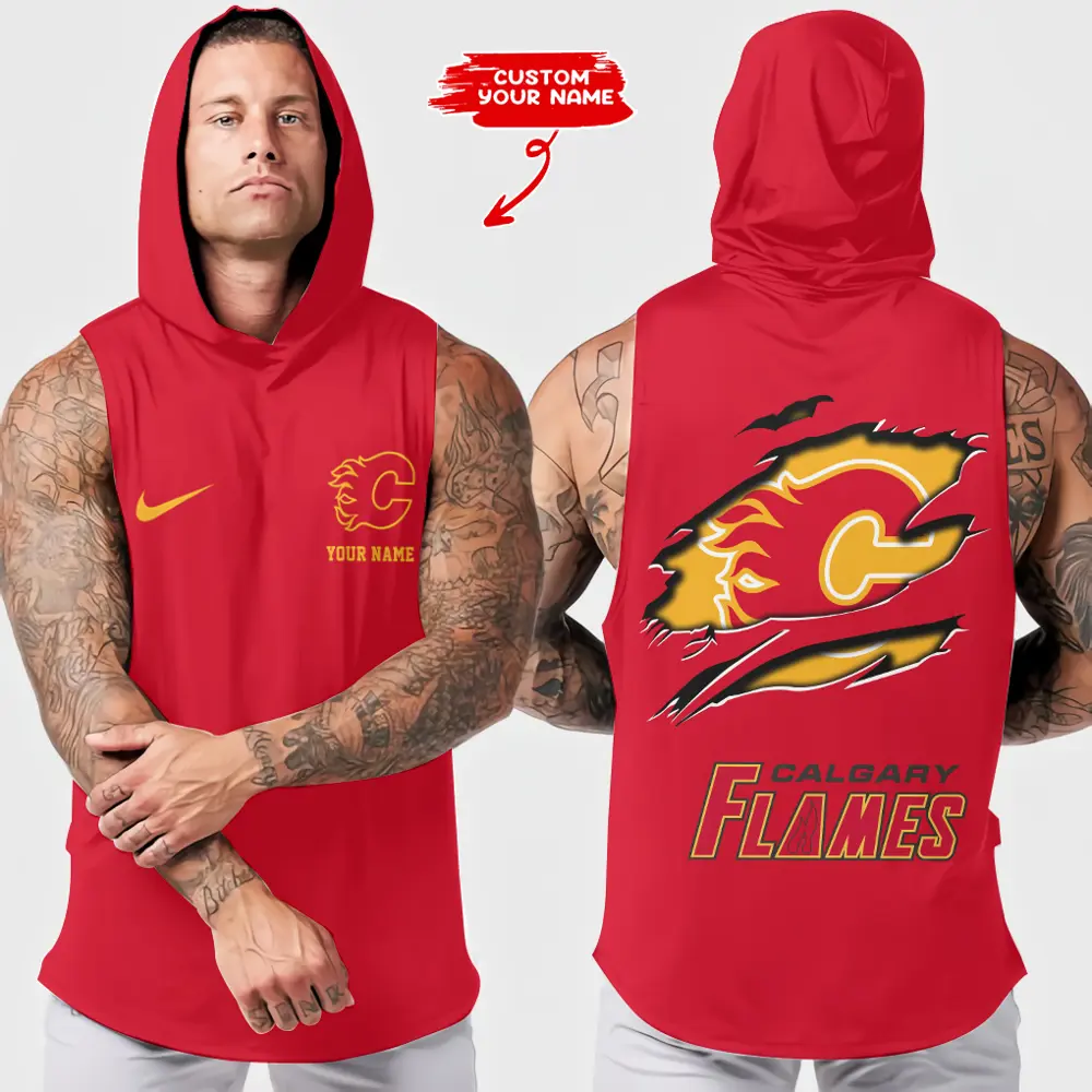 Calgary Flames NHL Sleeveless Pullover Hoodie Gym Training Hoodies Bodybuilding
