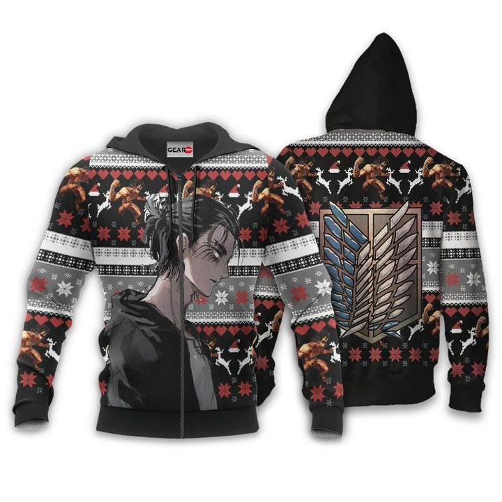 AOT Eren Ugly Christmas Sweater Pullover Hoodie Custom Anime Attack On Titan Xmas Gifts