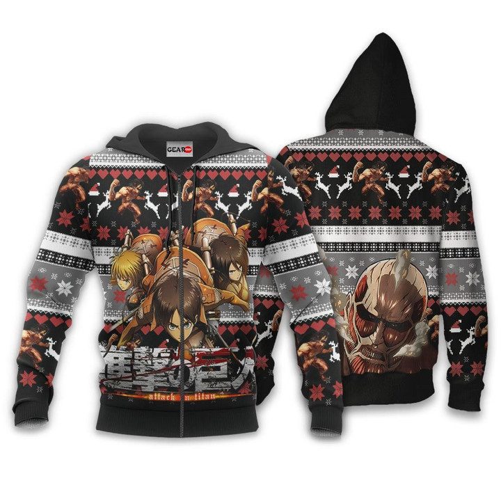 AOT Squad Ugly Christmas Sweater Pullover Hoodie Custom Anime Attack On Titan Xmas Gifts