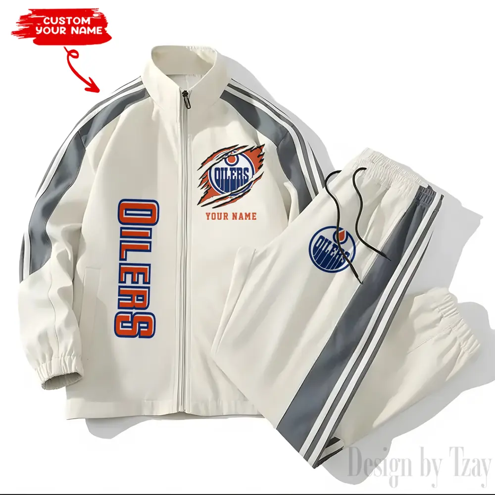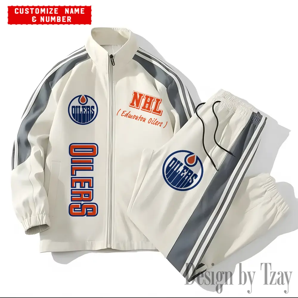 Edmonton Oilers NHL New Style Versatile Sports Set Jacket And Pants