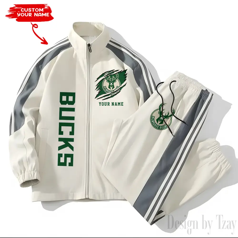 Milwaukee Bucks NBA New Style Versatile Sports Set Jacket And Pants