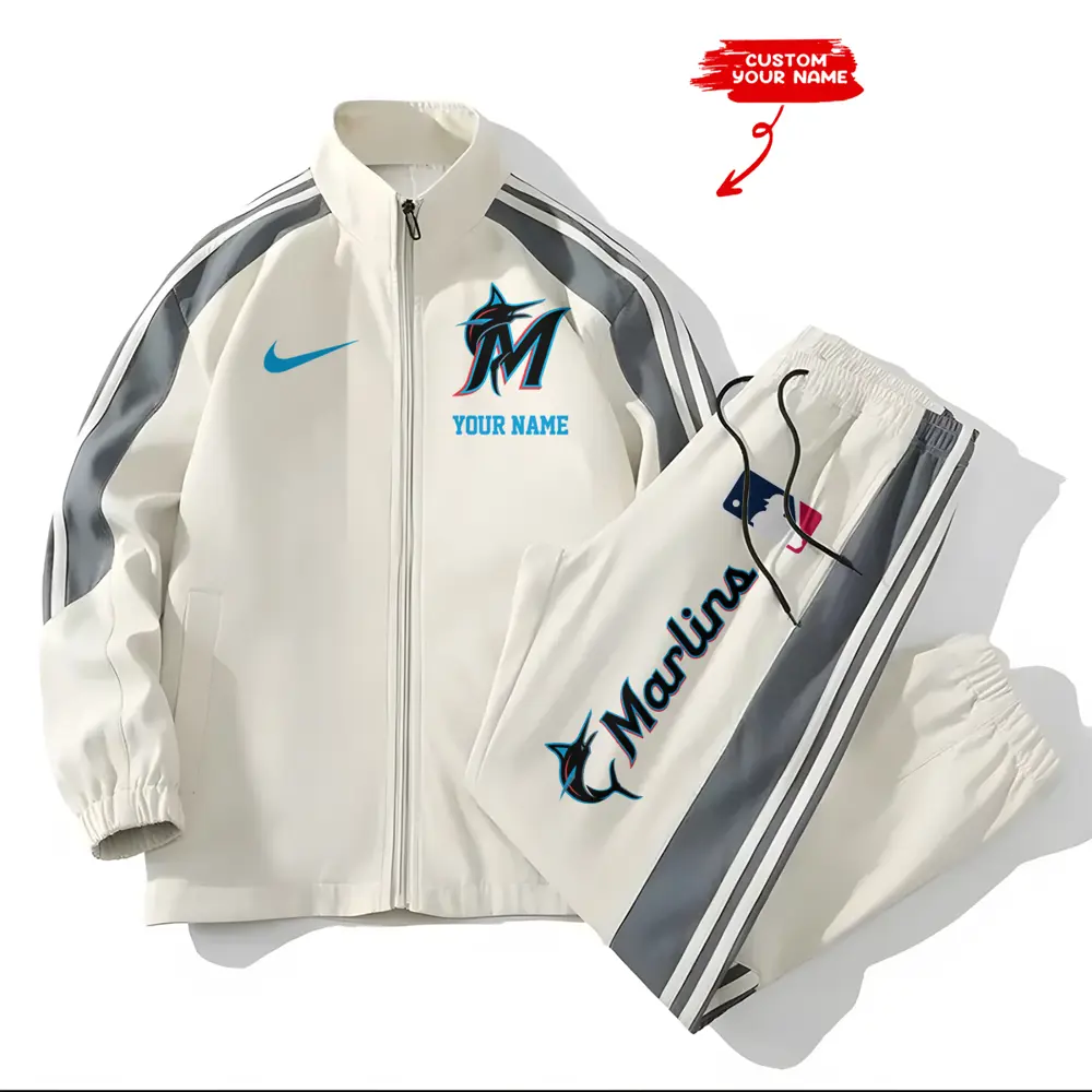 Miami Marlins MLB New Style Versatile Sports Set Jacket And Pants
