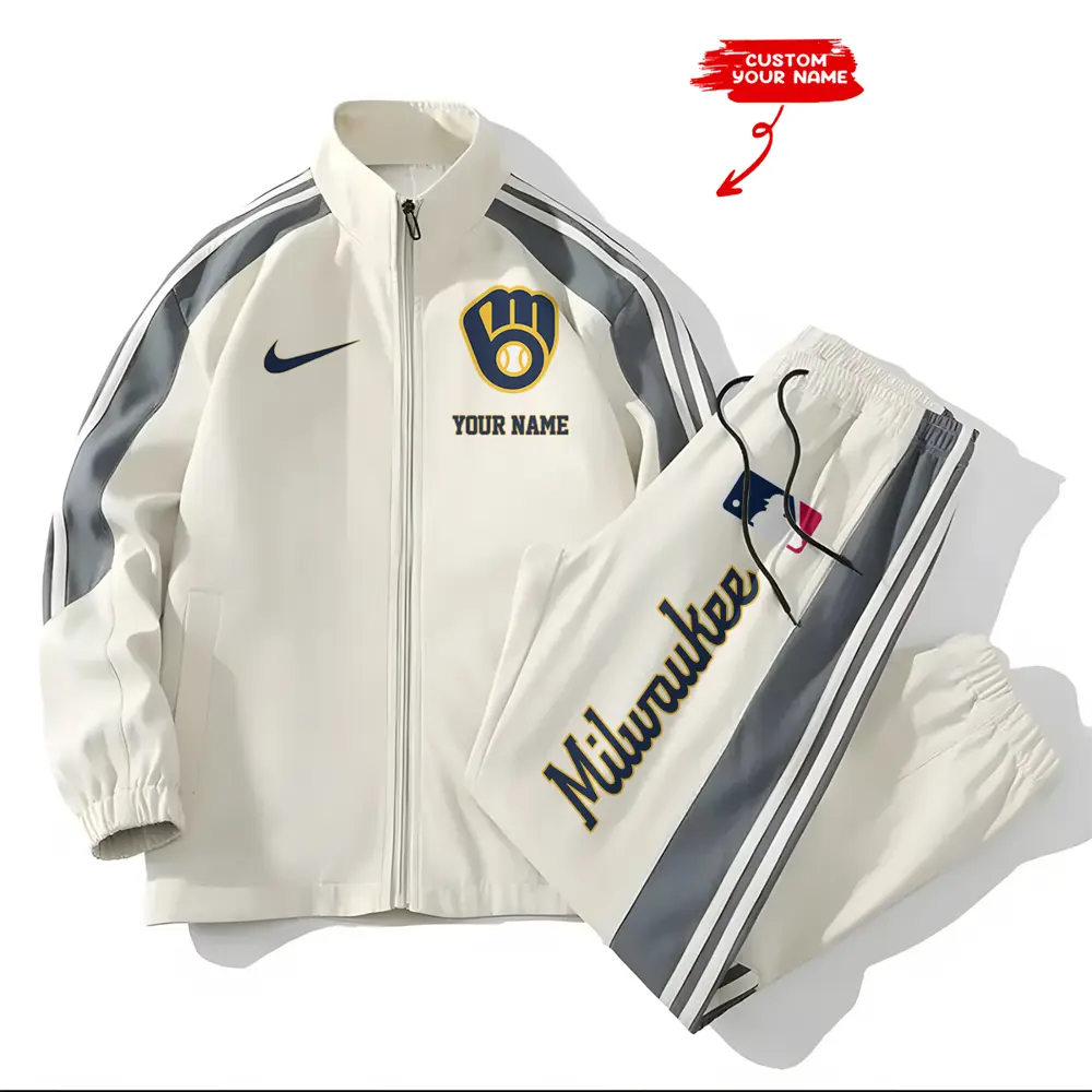 Milwaukee Brewers MLB New Style Versatile Sports Set Jacket And Pants