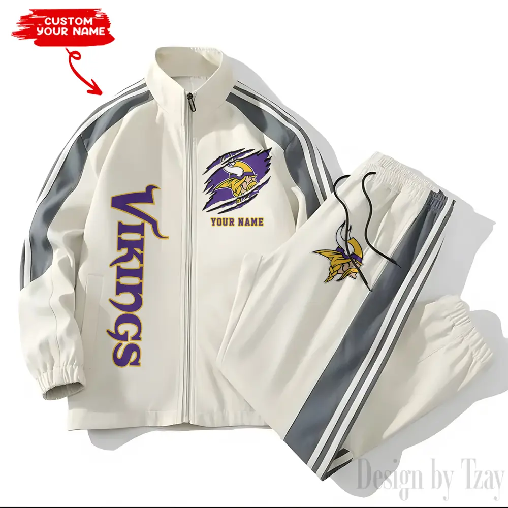 Minnesota Vikings NFL New Style Versatile Sports Set Jacket And Pants
