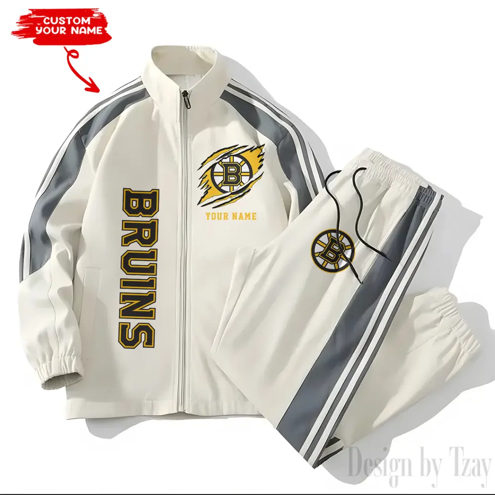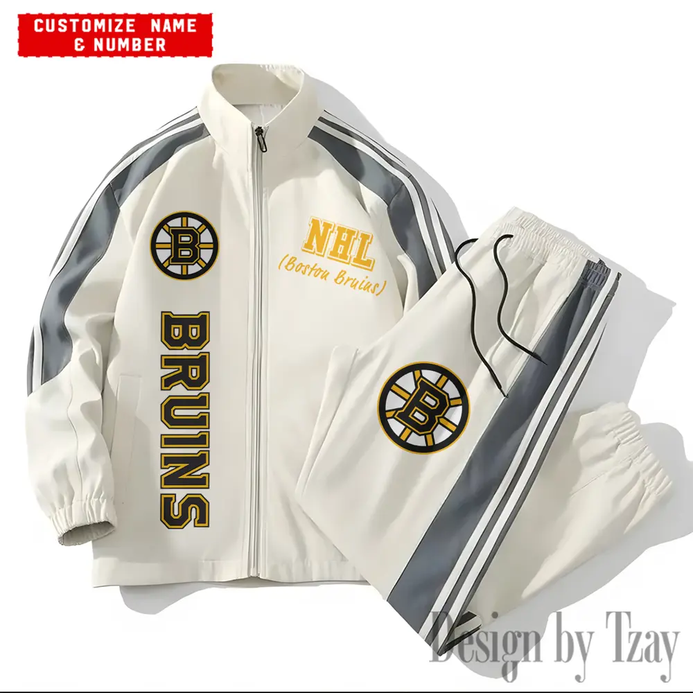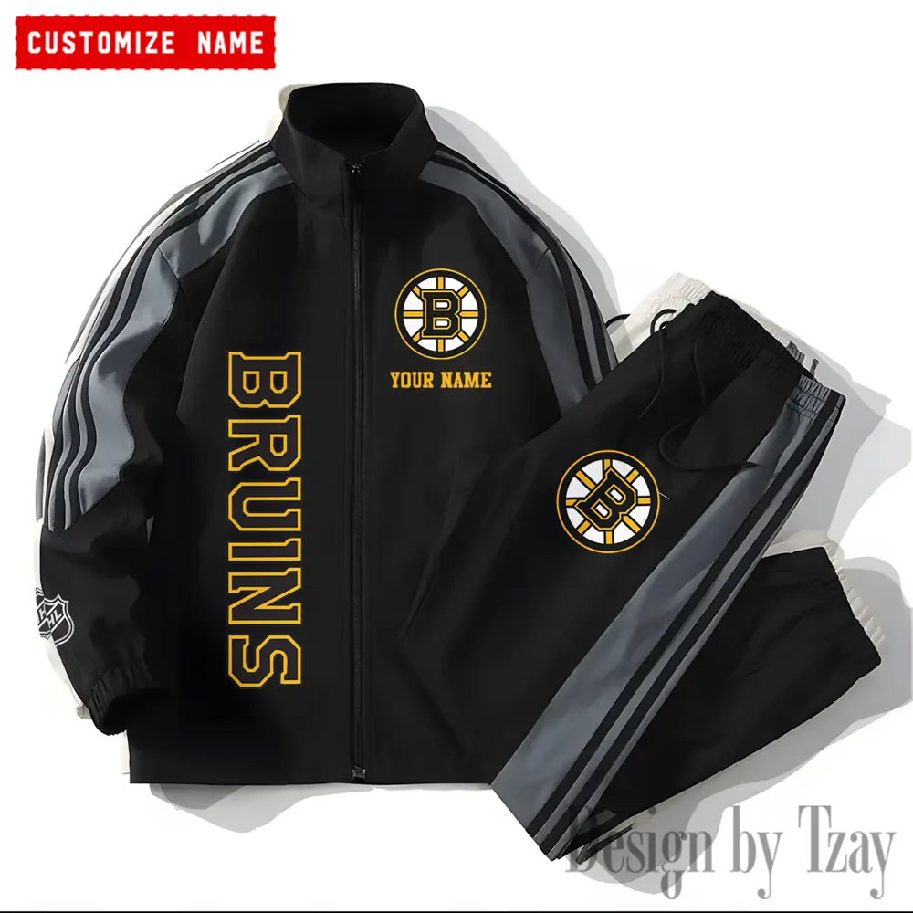 Boston Bruins NHL New Style Versatile Sports Set Jacket And Pants