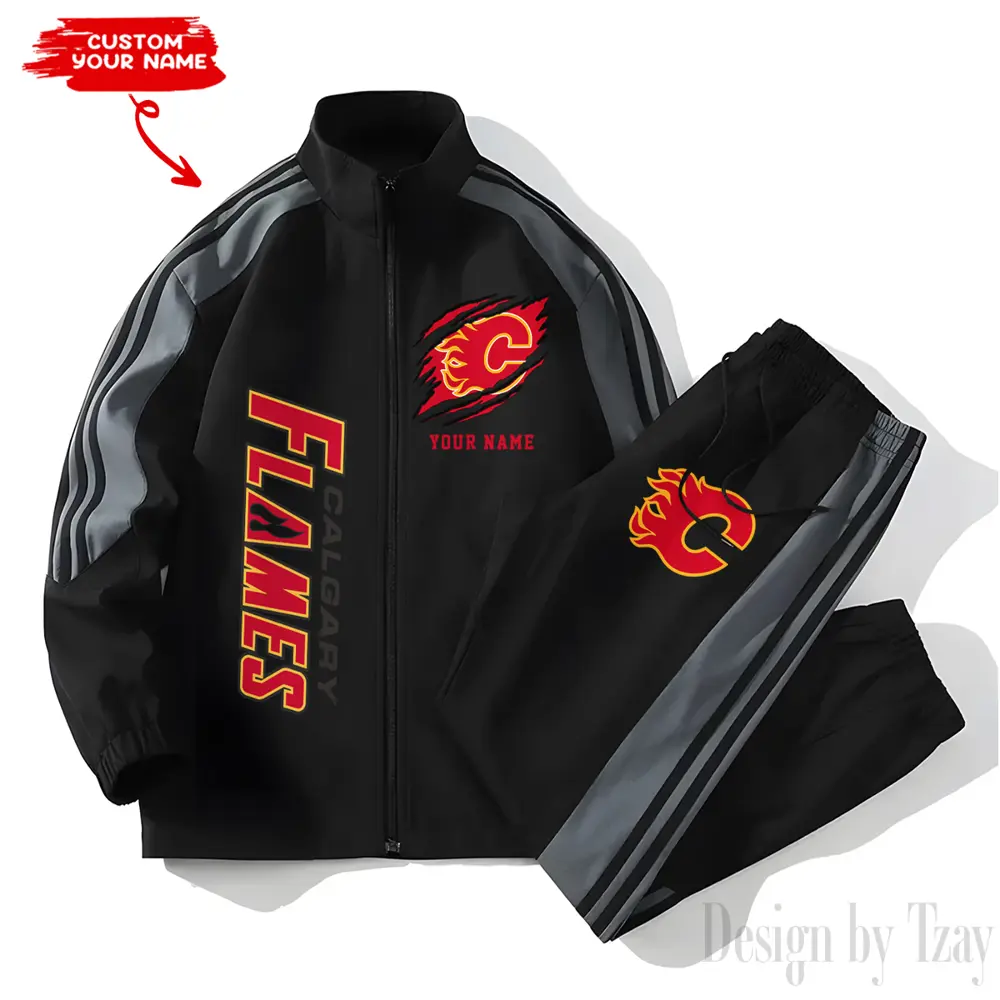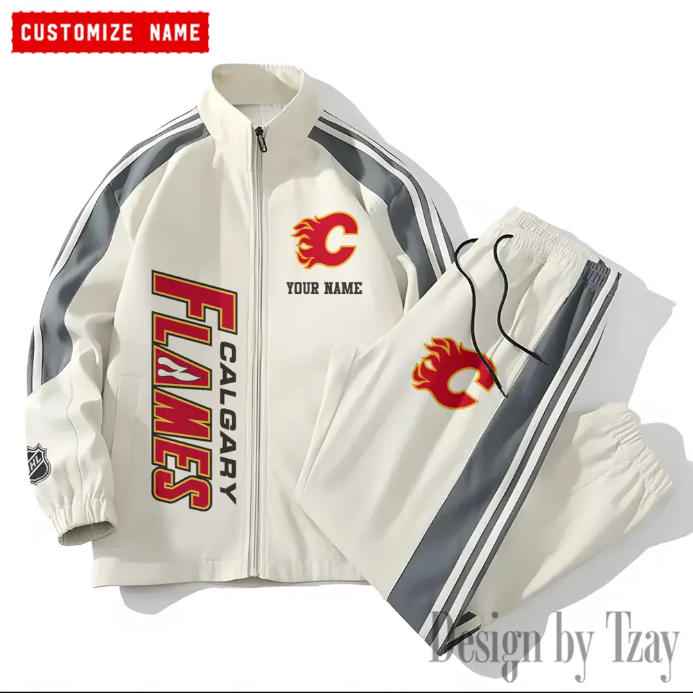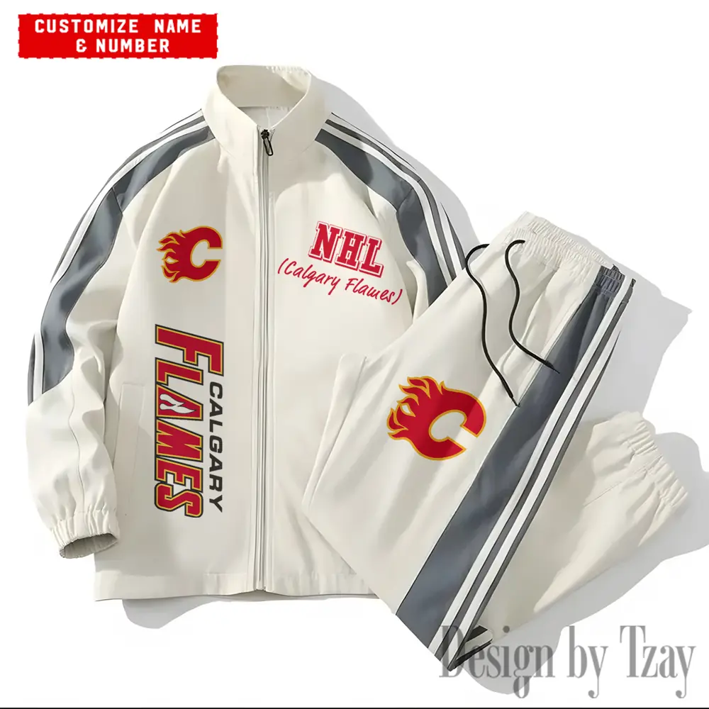 Calgary Flames NHL New Style Versatile Sports Set Jacket And Pants