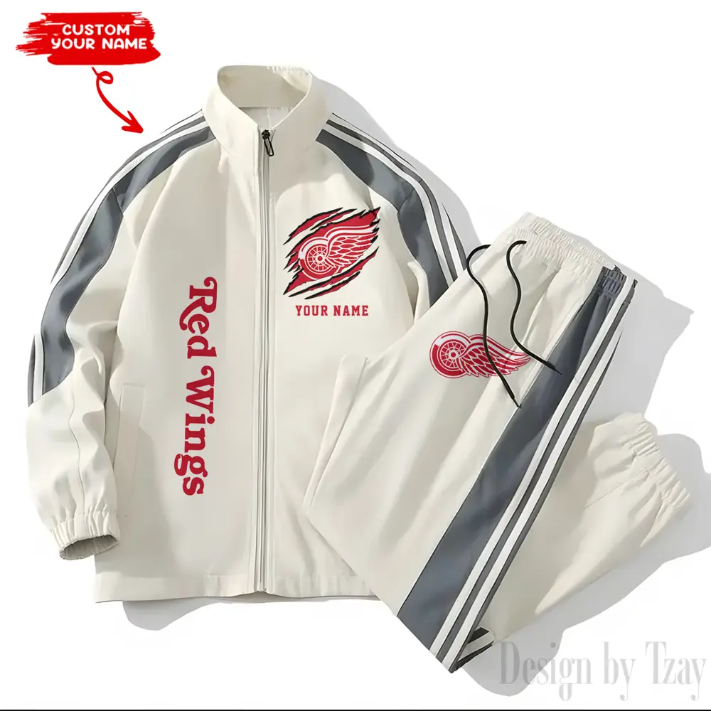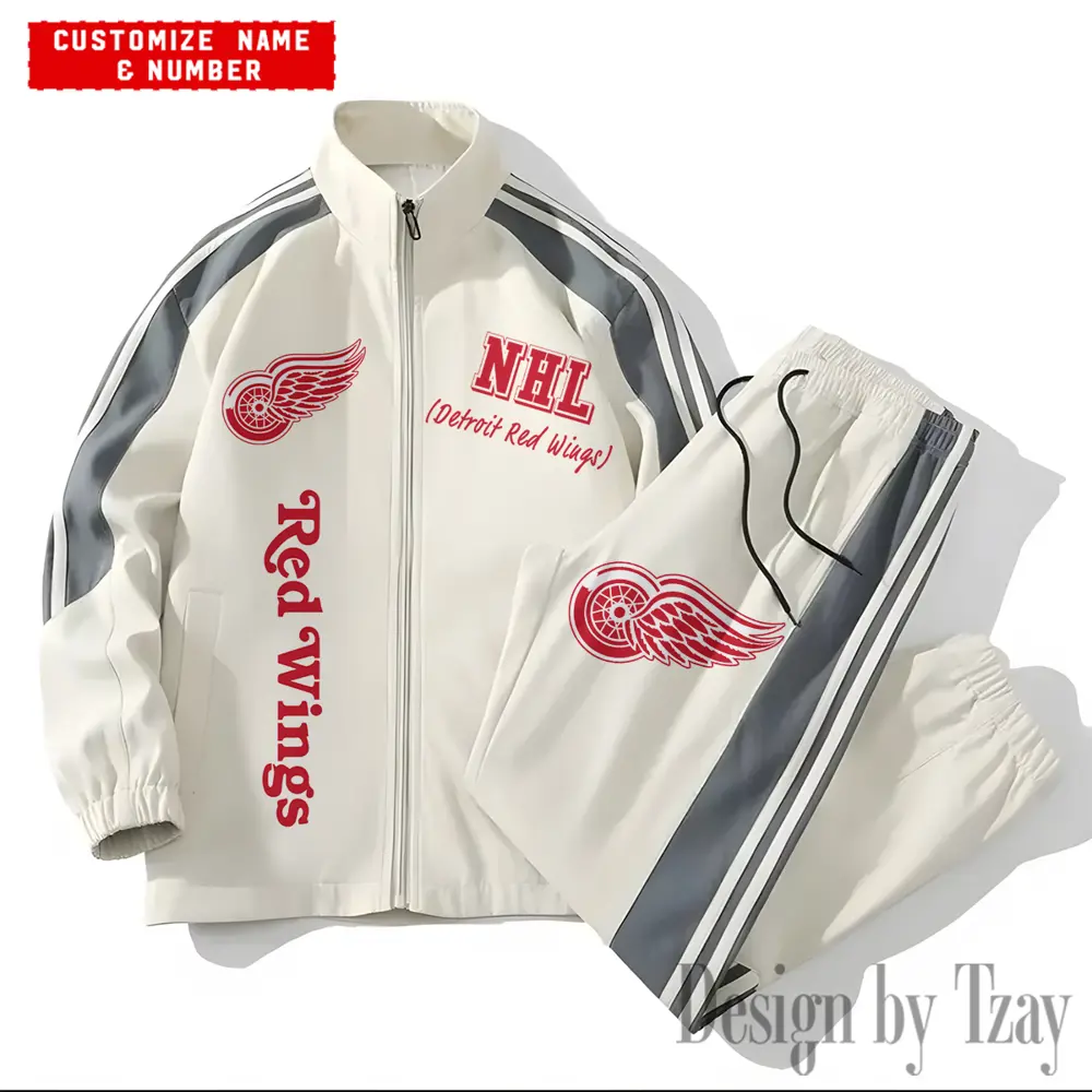 Detroit Red Wings NHL New Style Versatile Sports Set Jacket And Pants