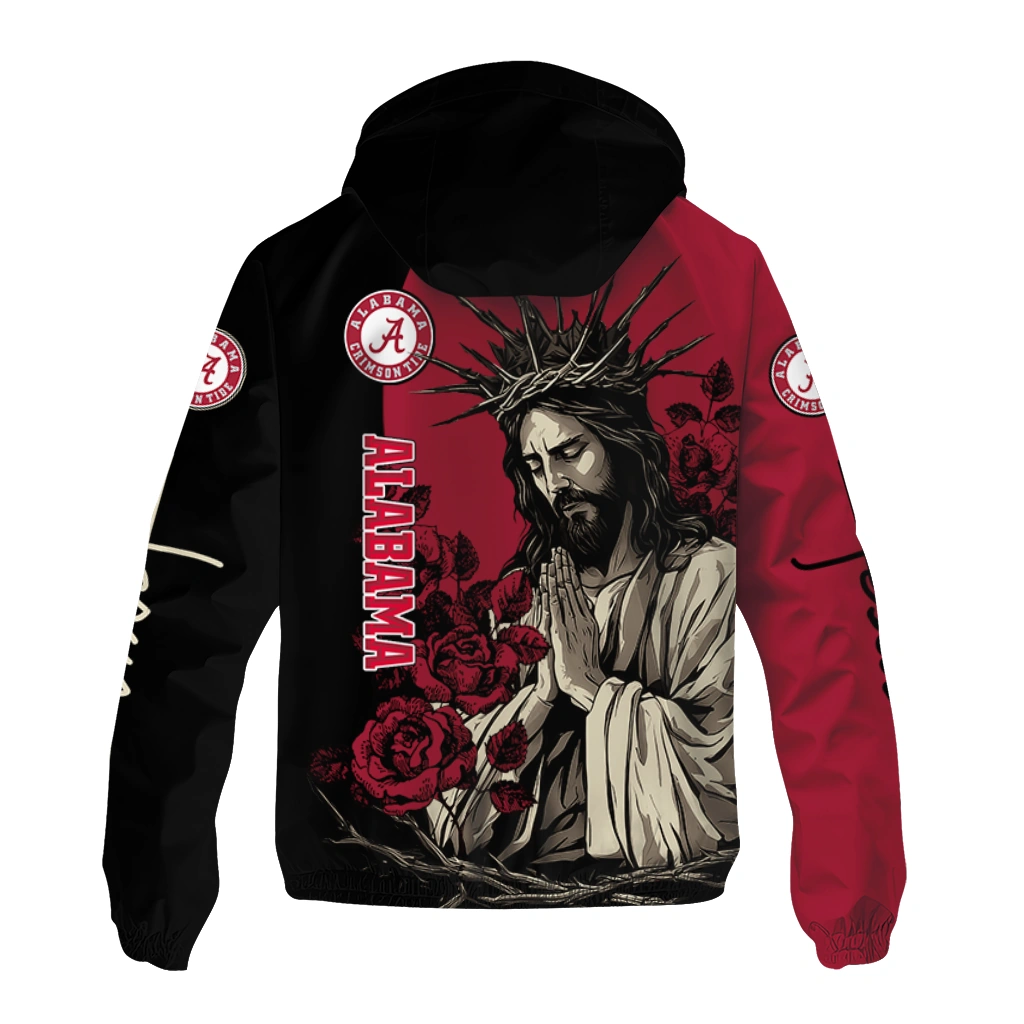 Alabama Crimson Tide Jesus Roses Crimson Black Windbreaker Jacket
