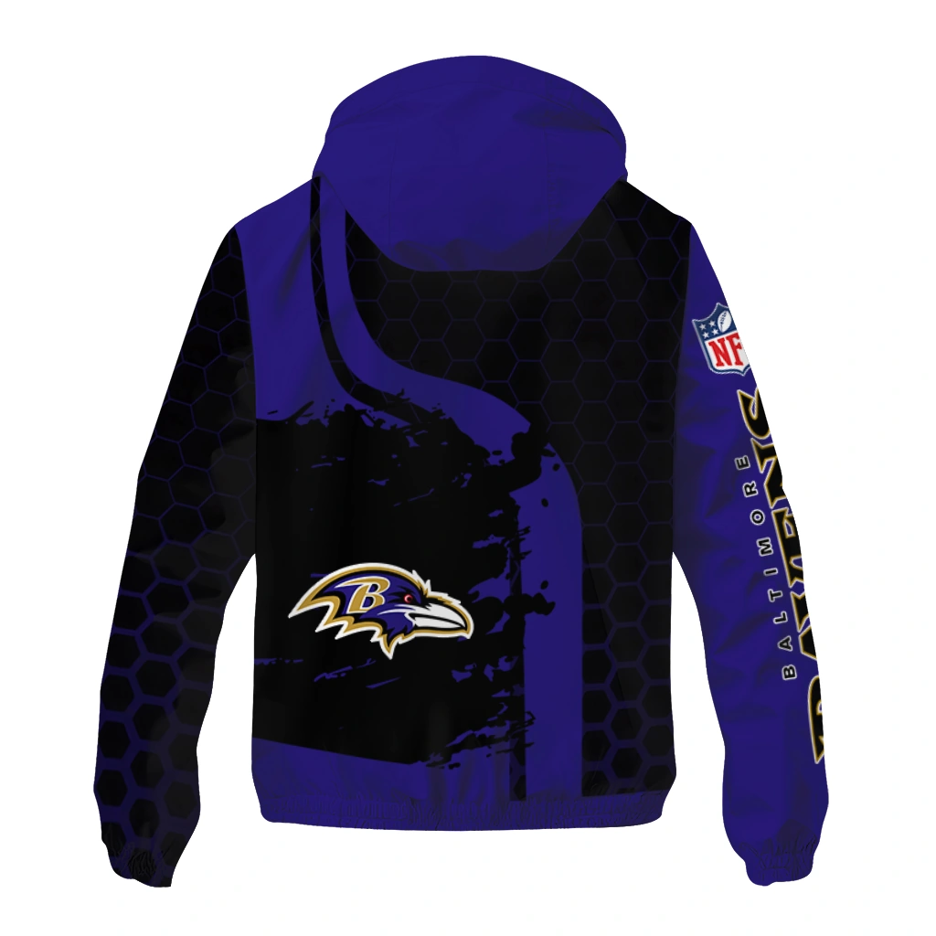 Baltimore Ravens Hexagon Paint Purple Black Windbreaker Jacket
