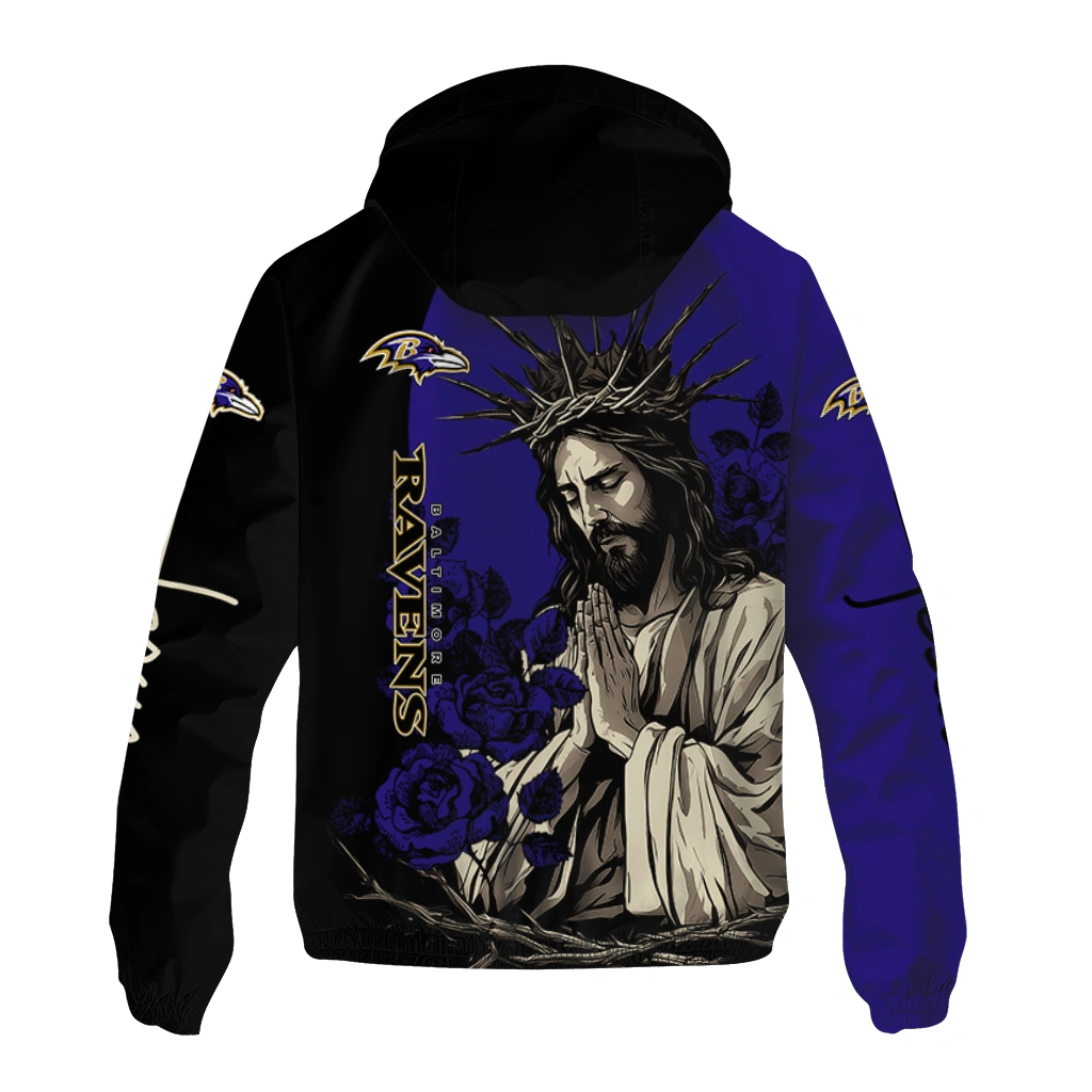 Baltimore Ravens Jesus Roses Purple Black Windbreaker Jacket