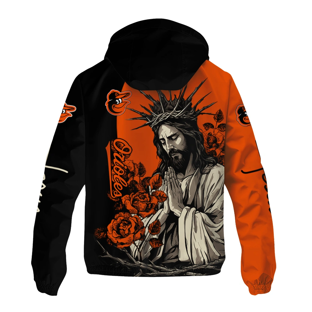 Baltimore Orioles Jesus Roses Orange Black Windbreaker Jacket