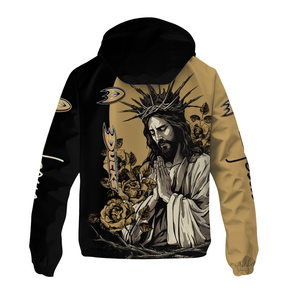 Anaheim Ducks Jesus Roses Gold Black Windbreaker Jacket