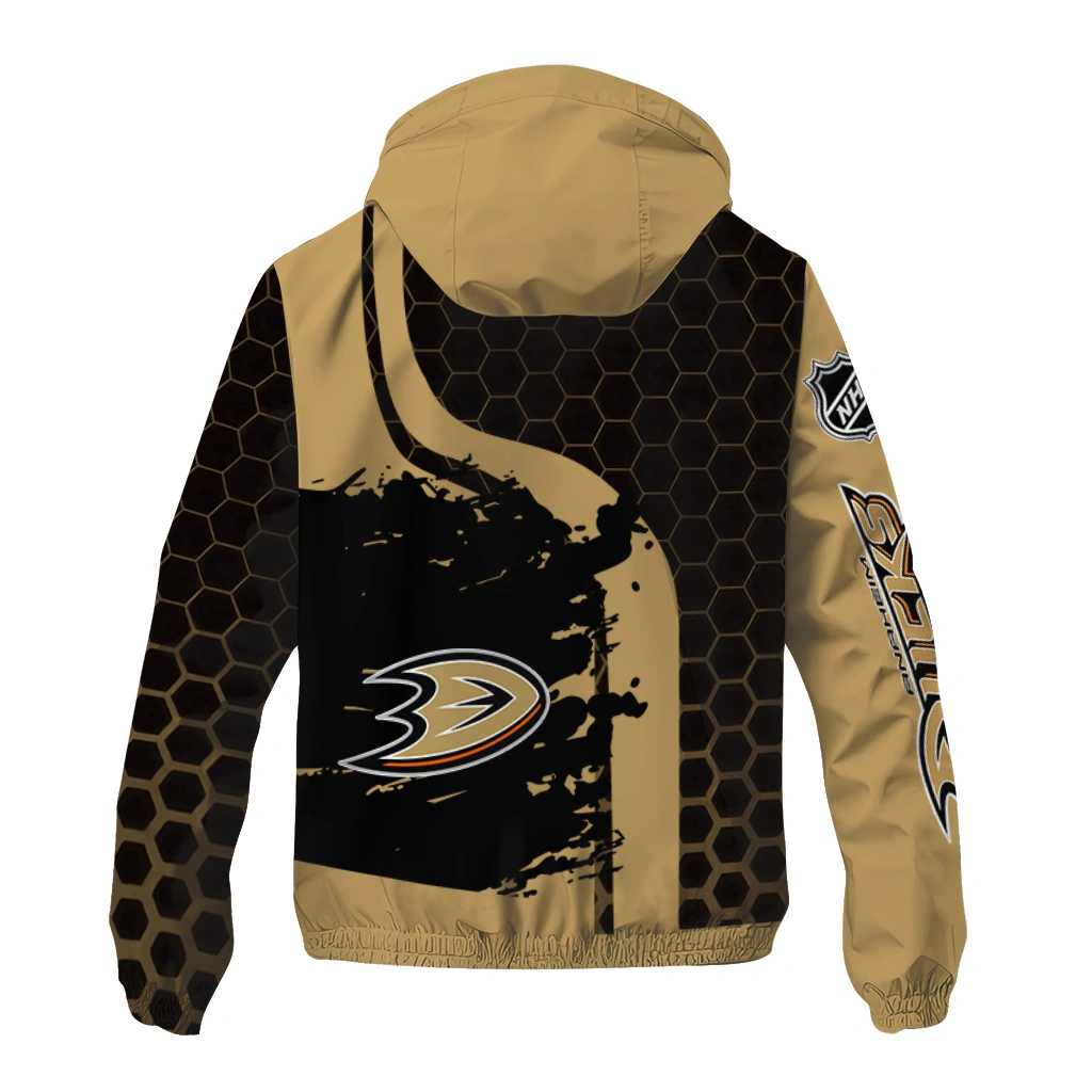 Anaheim Ducks Hex Grid Texture Gold Black Windbreaker Jacket