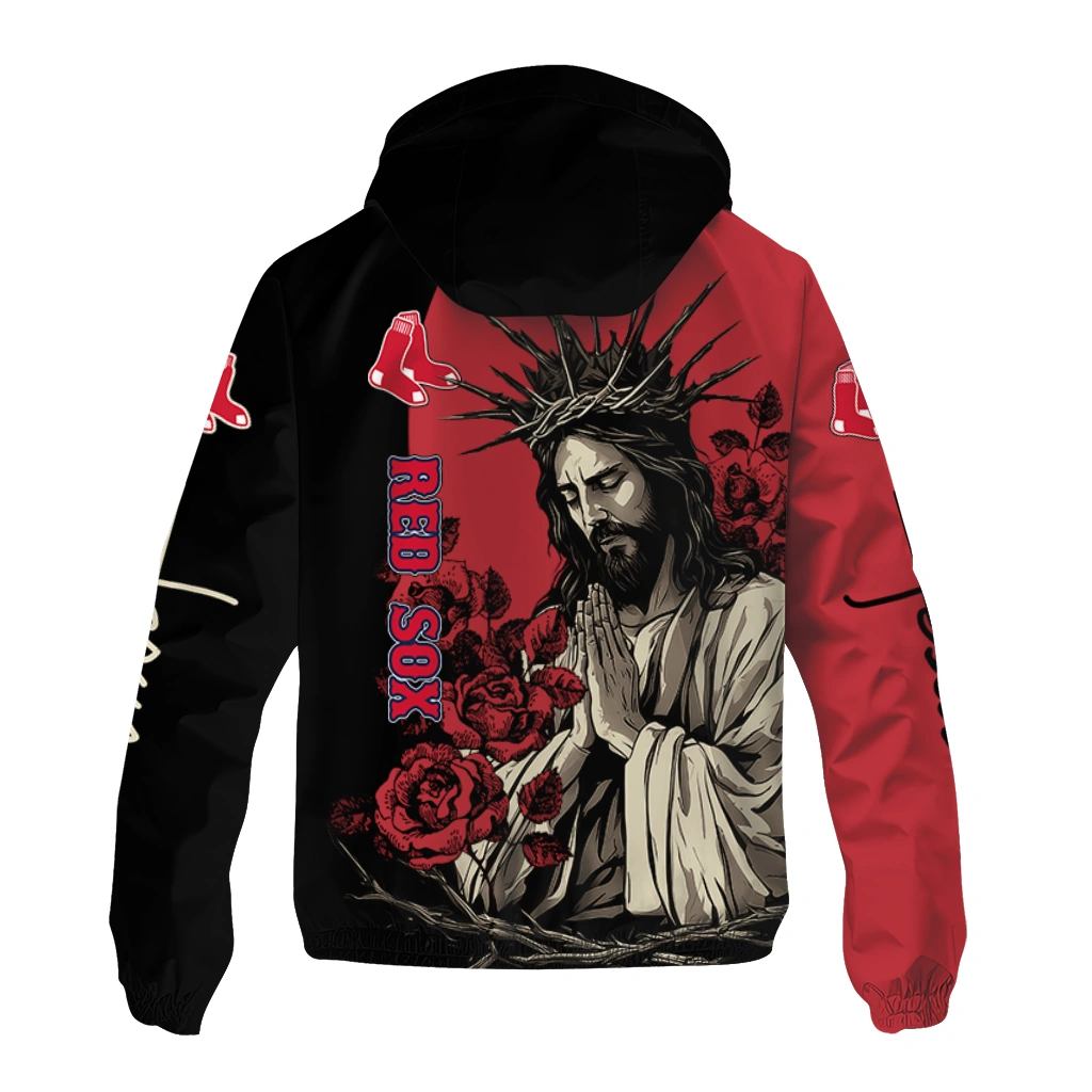 Boston Red Sox Jesus Roses Red Black Windbreaker Jacket