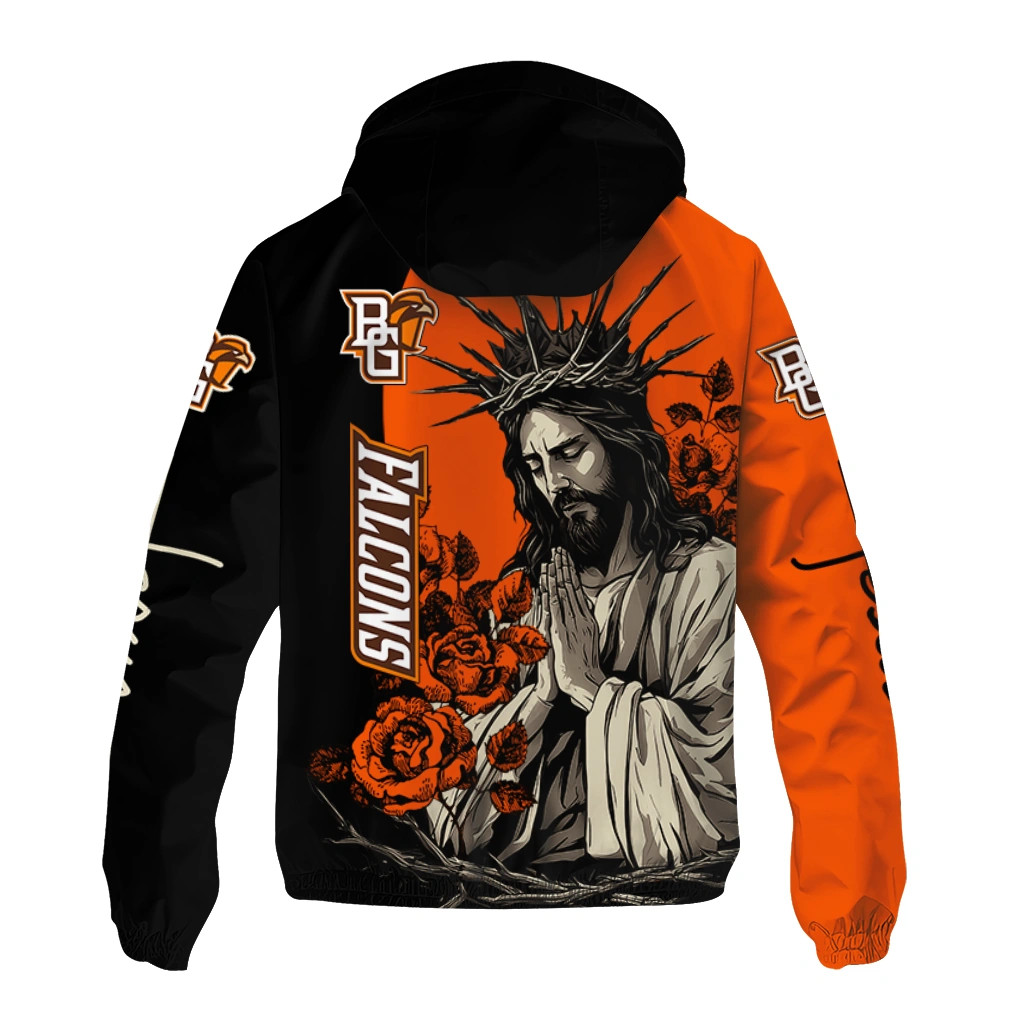 Bowling Green Falcons Jesus Roses Orange Black Windbreaker Jacket