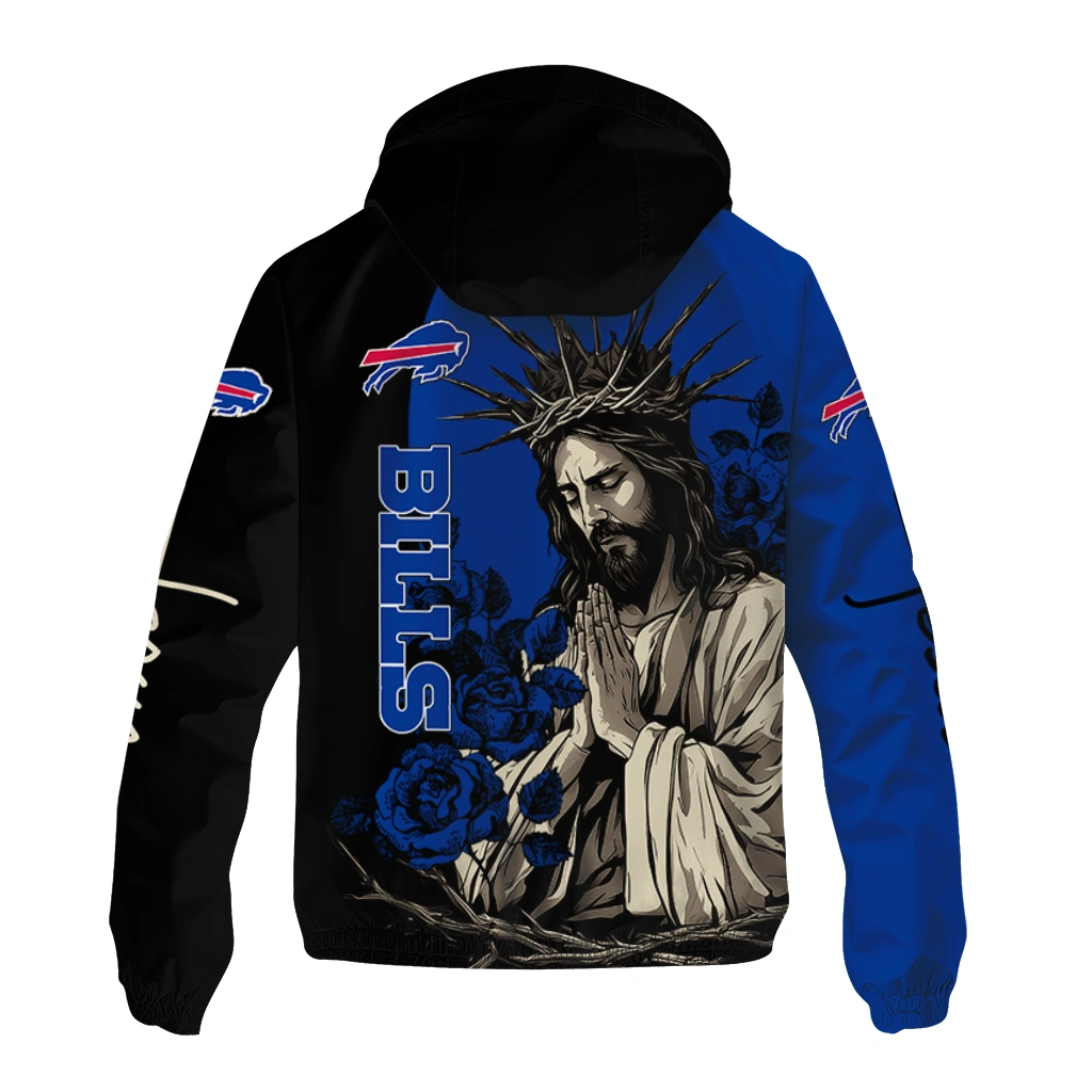 Buffalo Bills Jesus Roses Blue Black Windbreaker Jacket