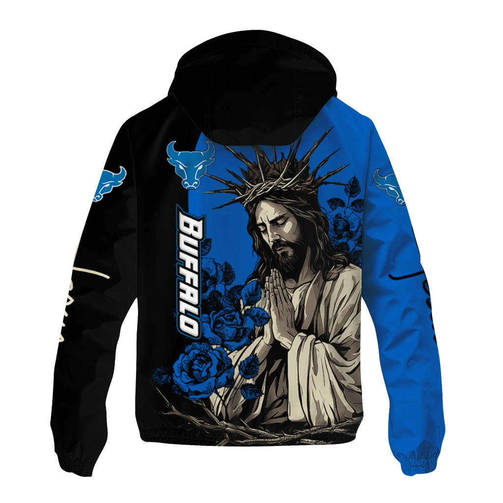 Buffalo Bulls Jesus Roses Royal Blue Black Windbreaker Jacket