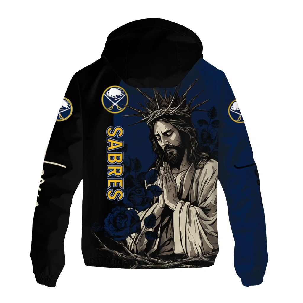 Buffalo Sabres Jesus Roses Navy Blue Black Windbreaker Jacket