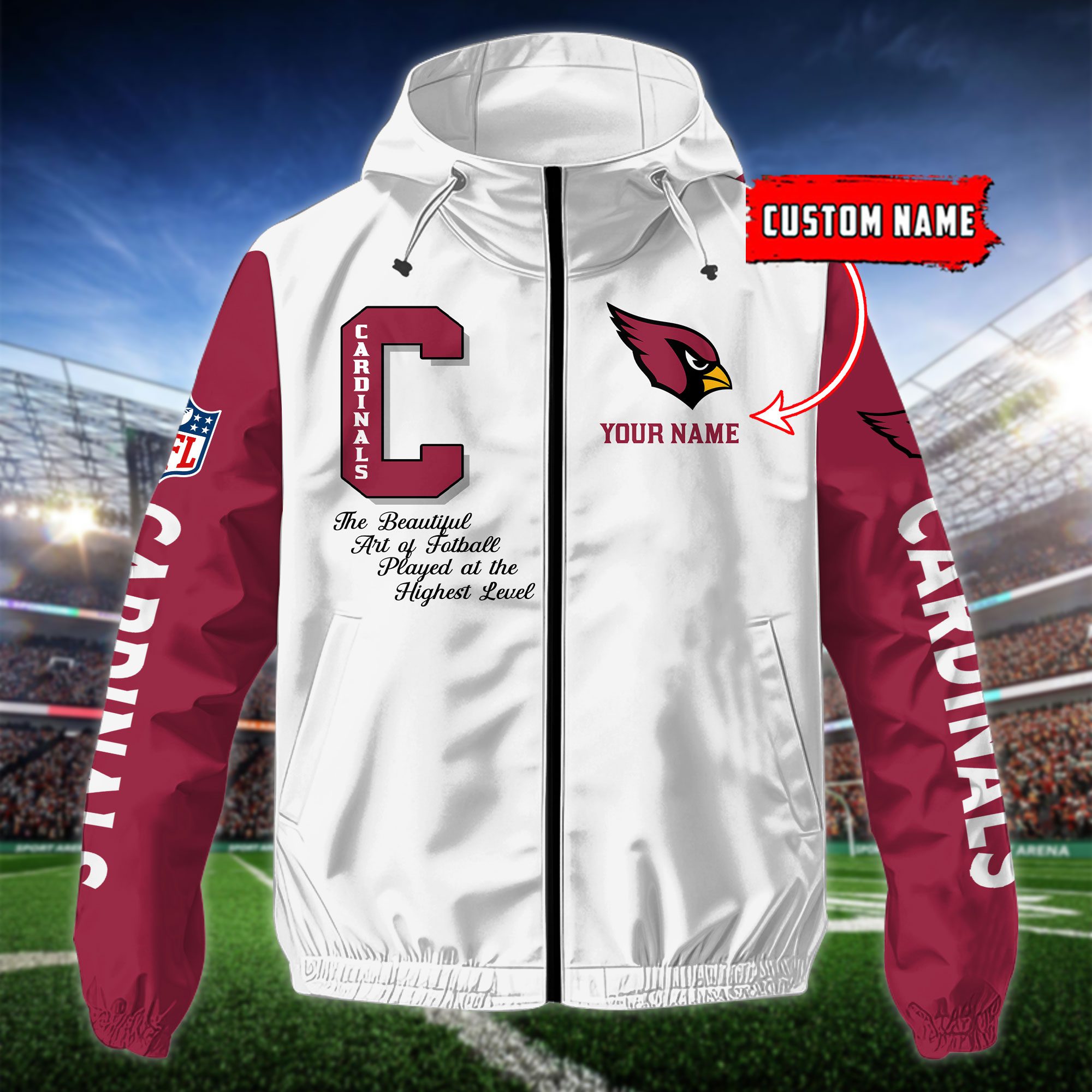 Arizona Cardinals NFL Windbreaker Jacket Stadium-Ready Waterproof Jacket For Sport Lovers