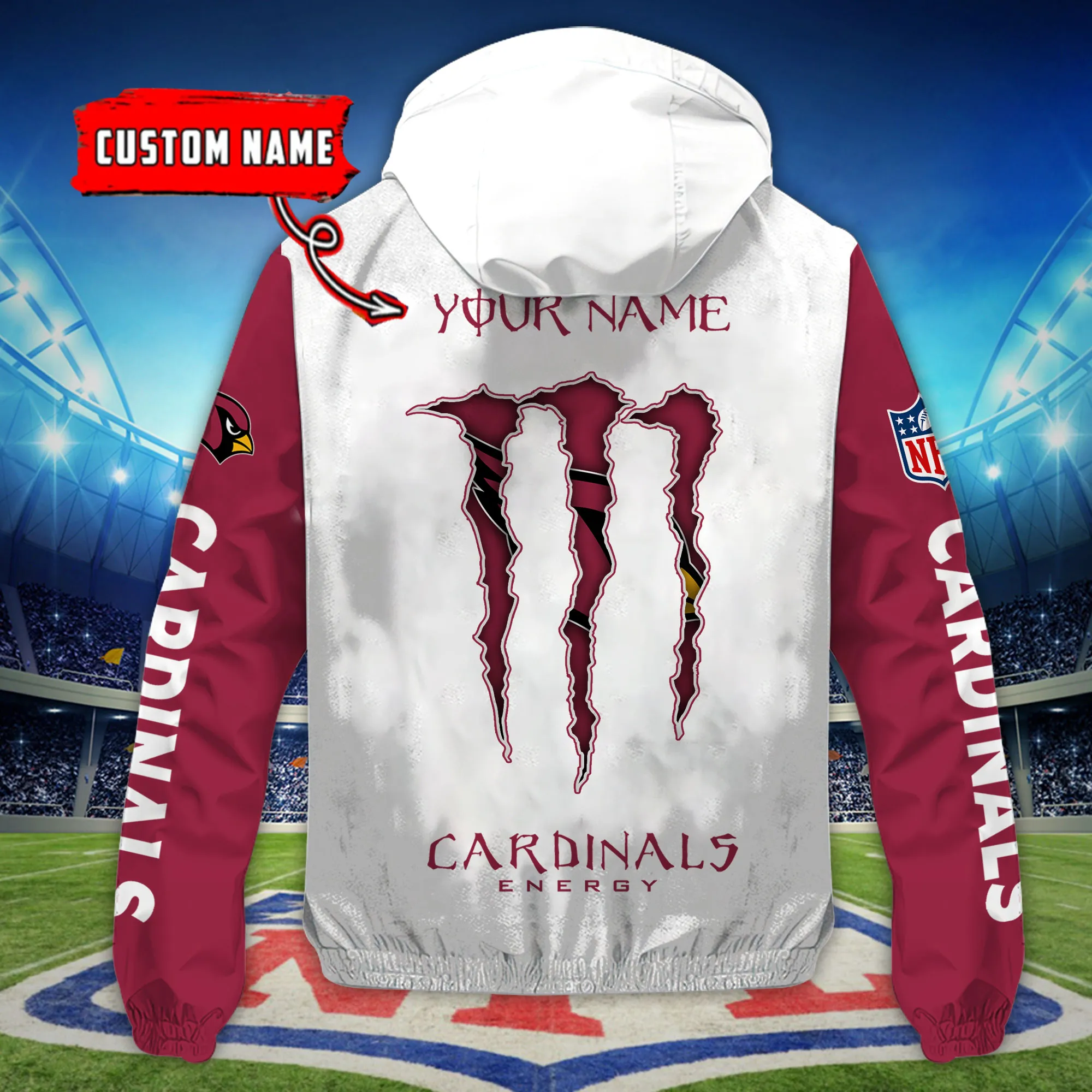 Arizona Cardinals NFL Windbreaker Outdoor Jacket Custom Name