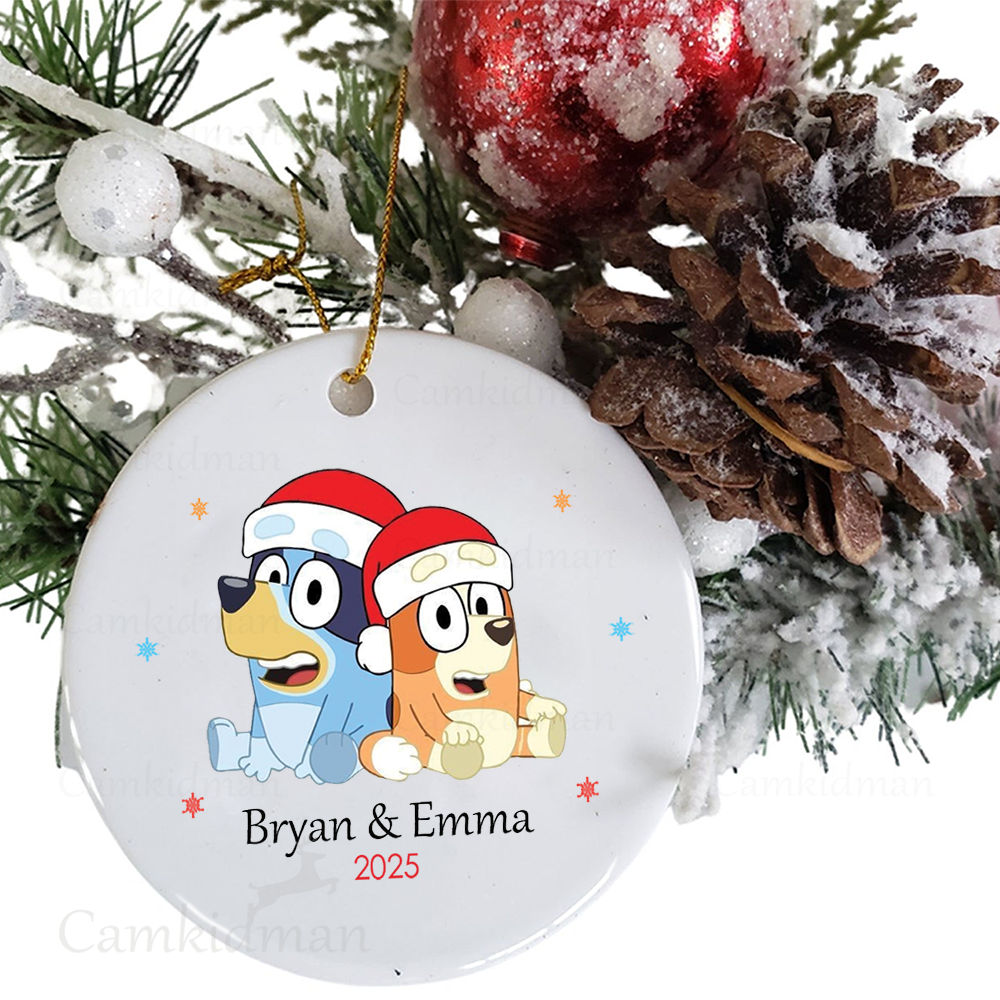 2025 Bluey and Bingo Ceramic Christmas Ornament 2025 Custome Name Holiday Decoration