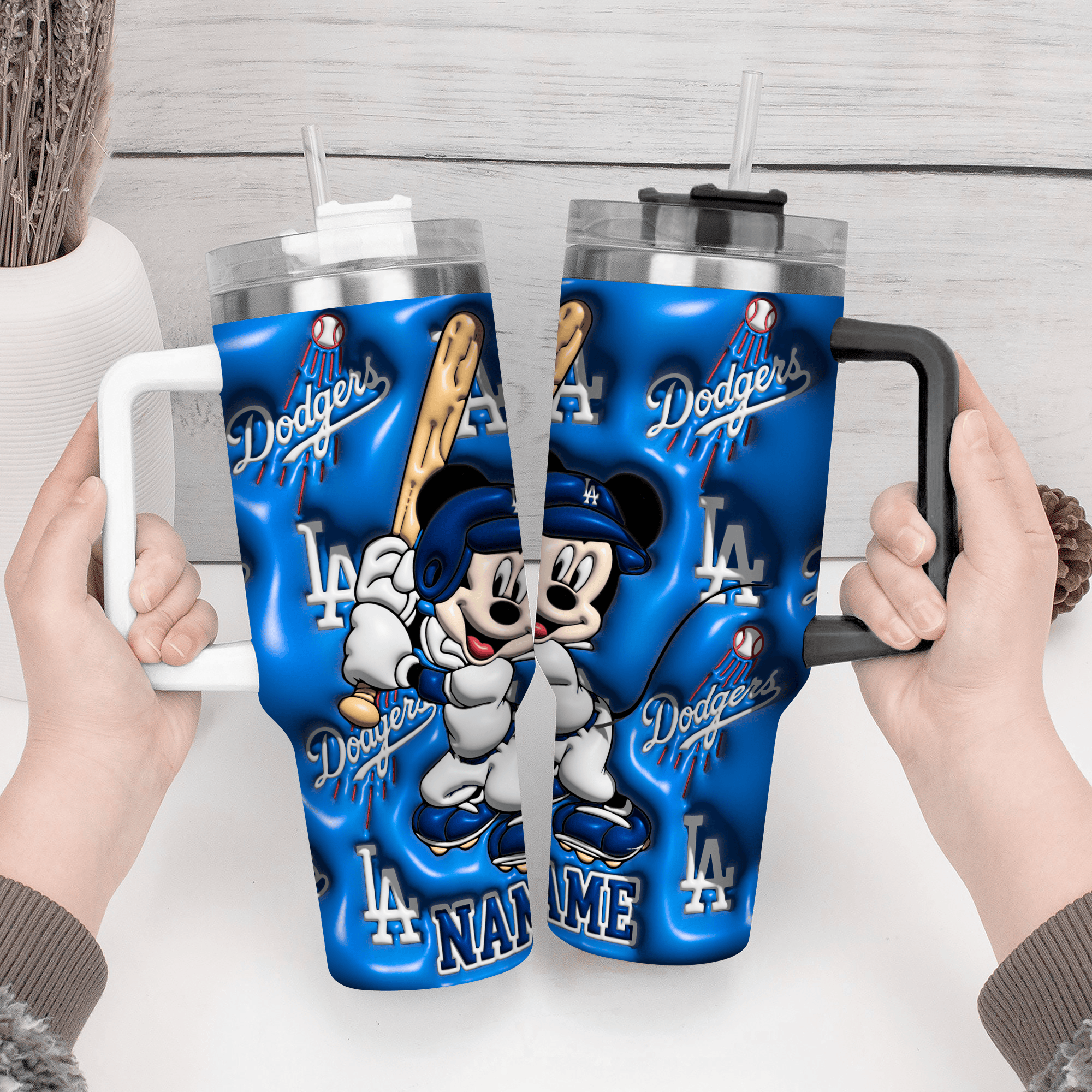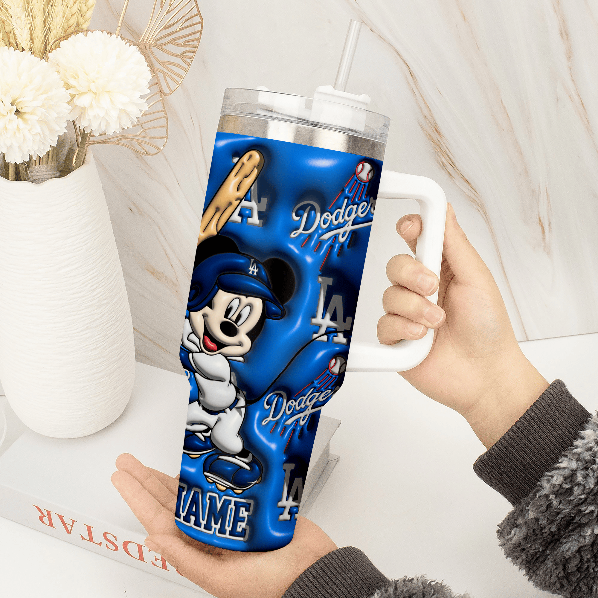 3D Mickey And Los Angeles Dodgers Cartoon,MLB Custom Stanley Quencher 40oz Stainless Steel Tumbler With Handle