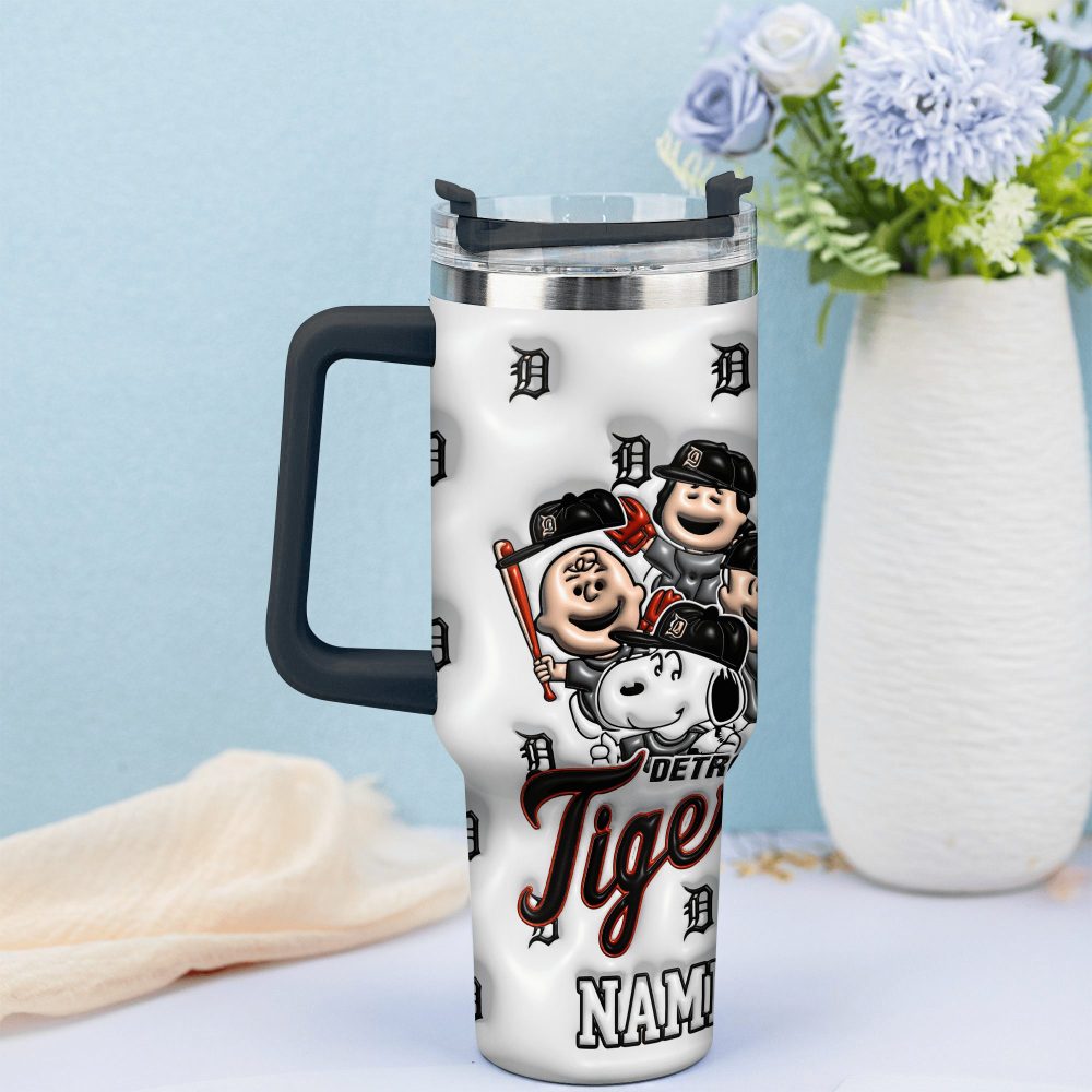 3D Snoopy And Detroit Tigers CartoonMlb Custom Stanley Quencher 40Oz Stainless Steel Tumbler With Handle