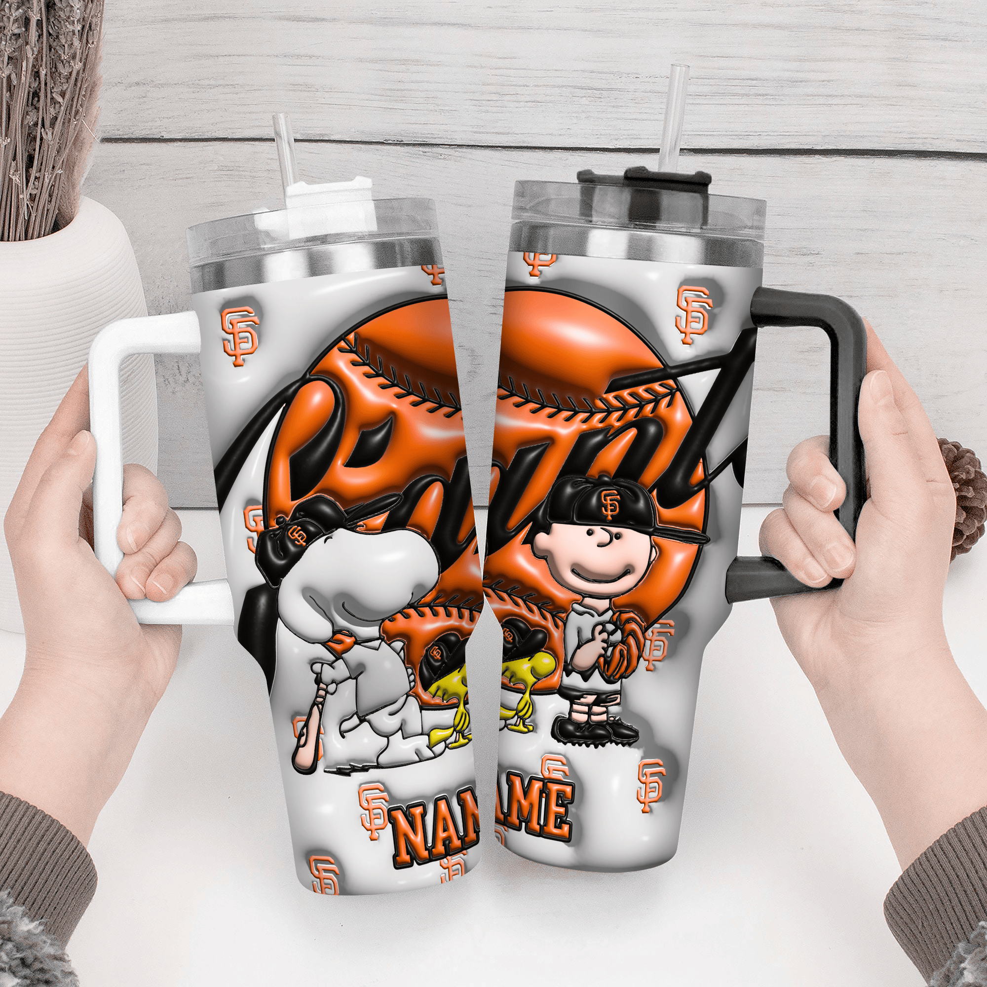 3D Snoopy and San Francisco Giants Cartoon,MLB Custom Stanley Quencher 40oz Stainless Steel Tumbler With Handle