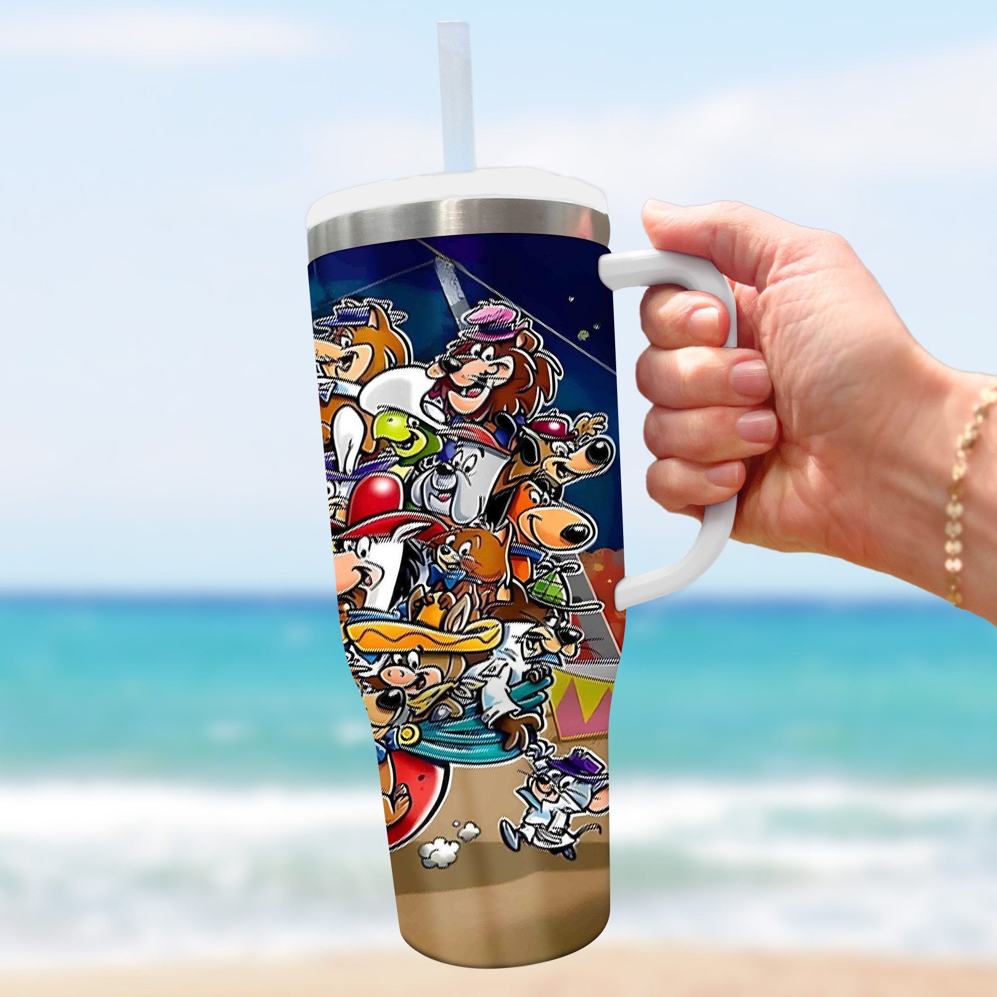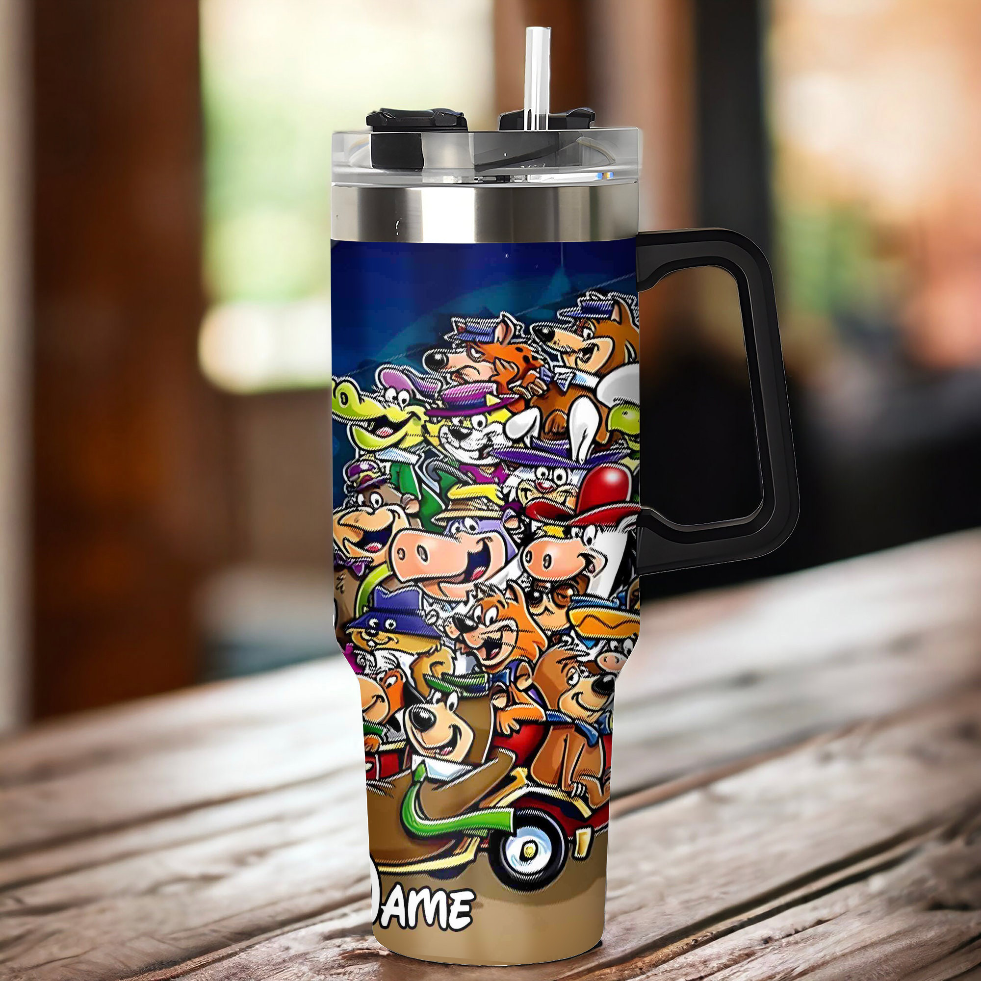 80s and 90s Cartoon Custom Stanley Quencher 40oz Stainless Steel Tumbler With Handle