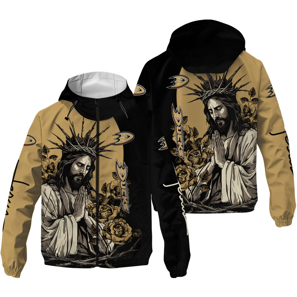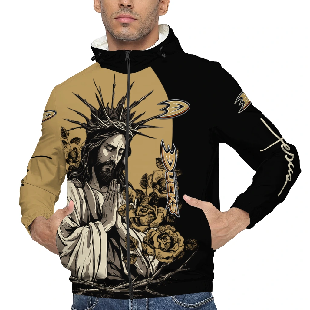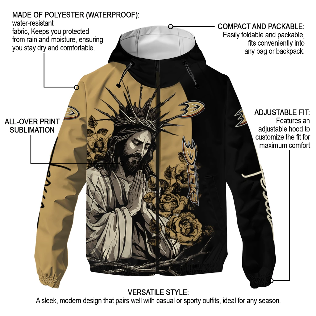 Anaheim Ducks Jesus Roses Gold Black Windbreaker Jacket