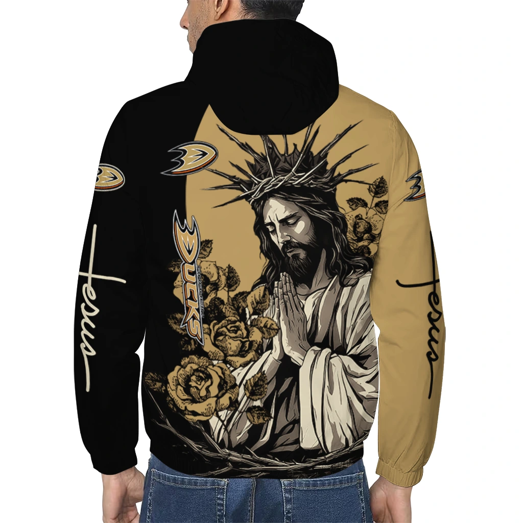 Be the first to review “Anaheim Ducks Jesus Roses Gold Black Windbreaker Jacket”