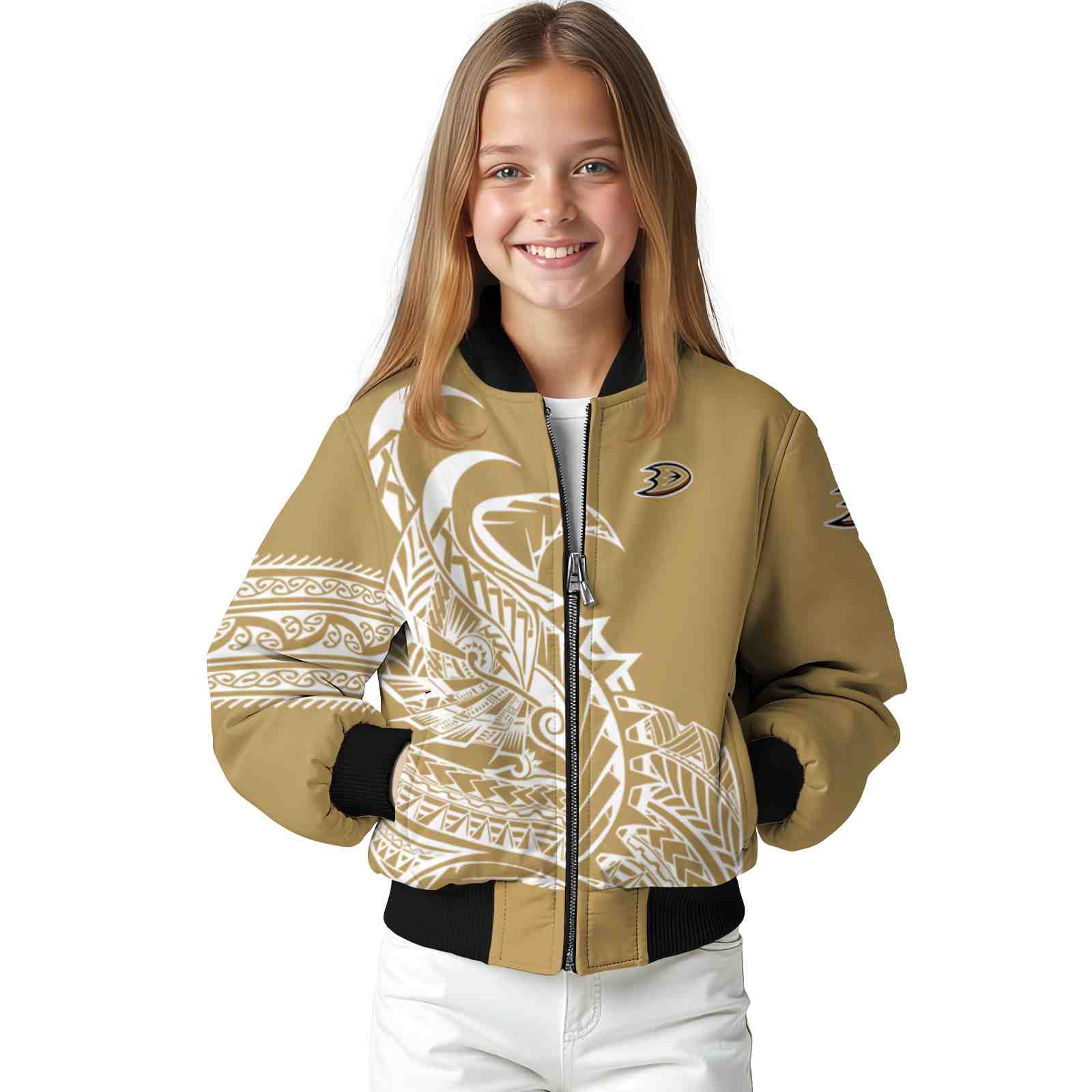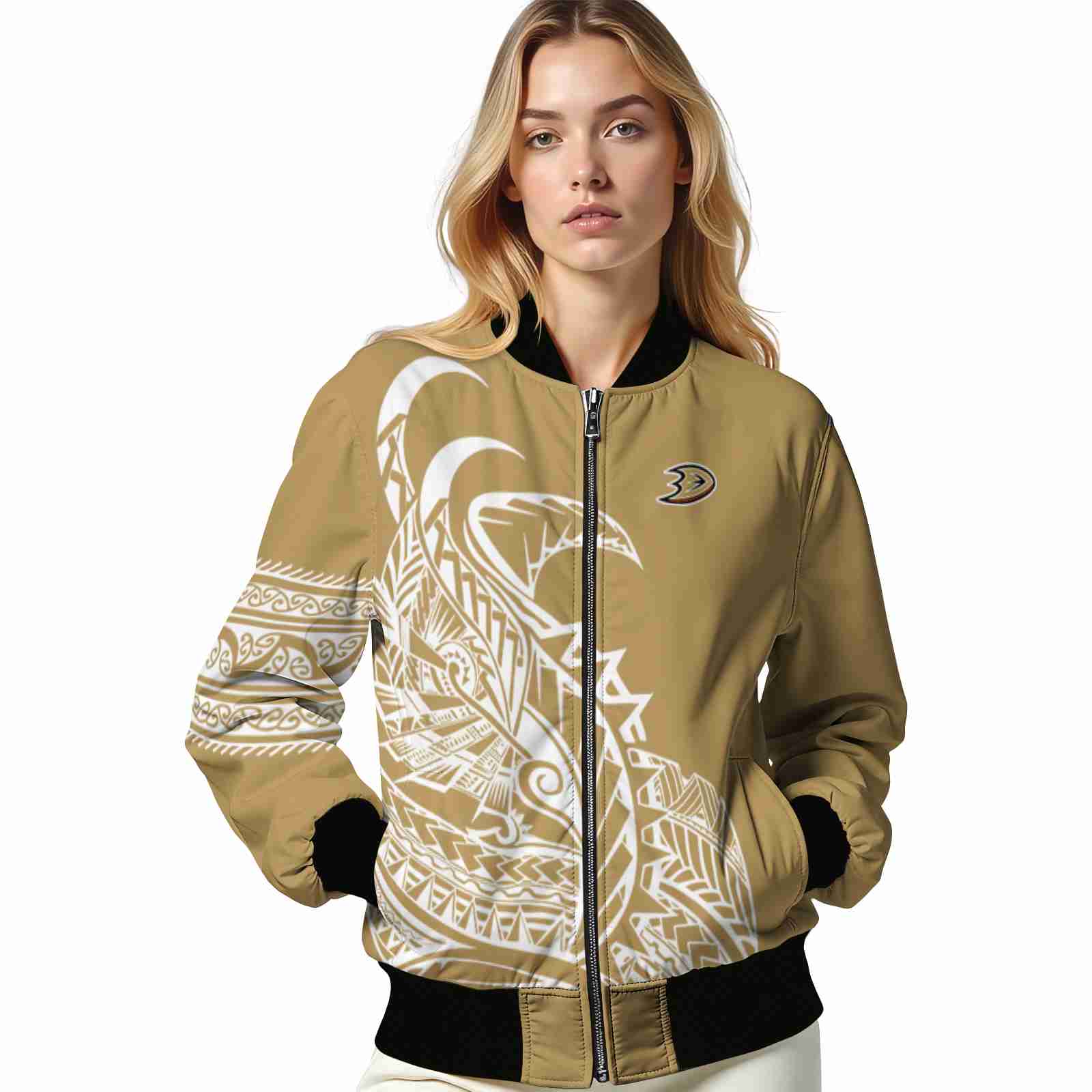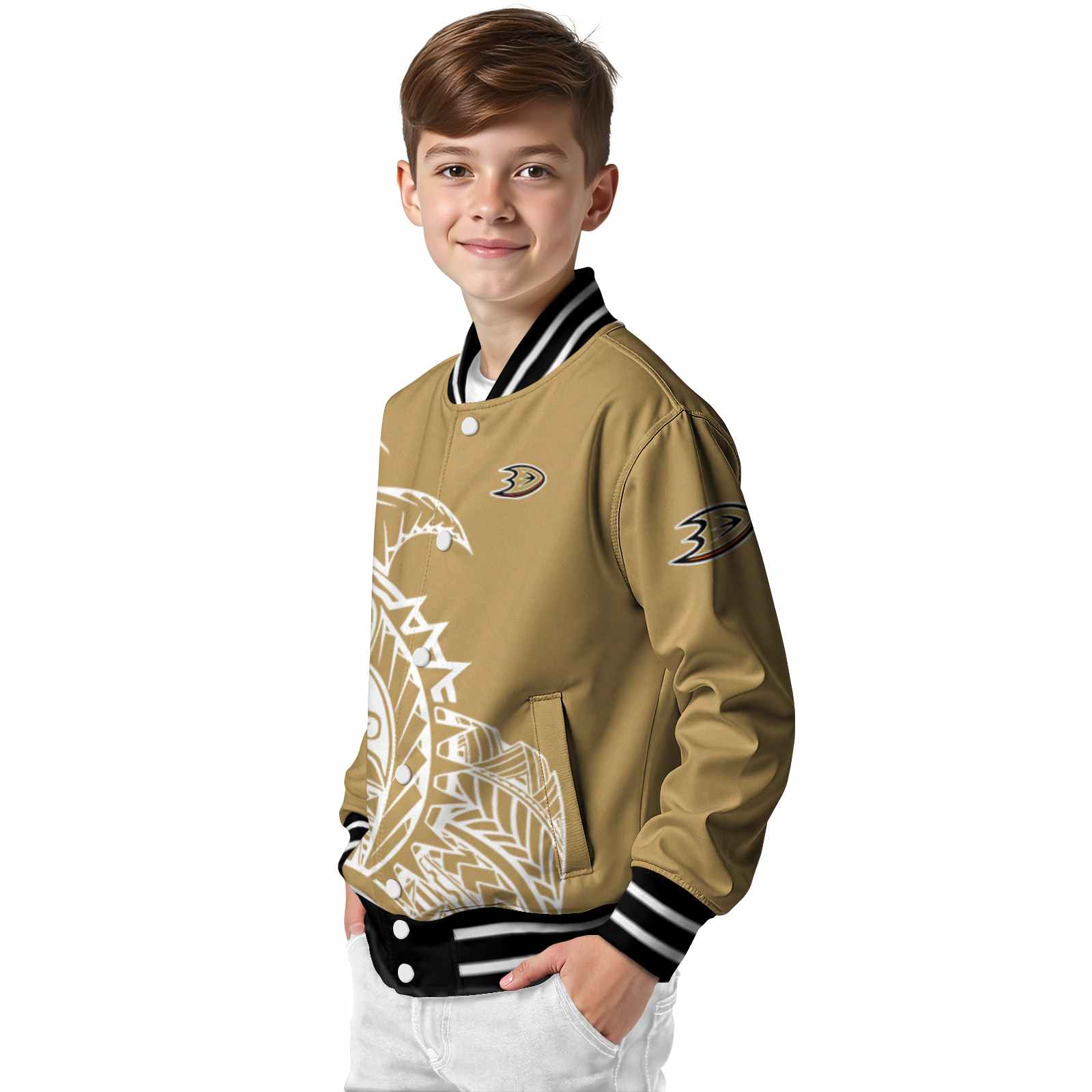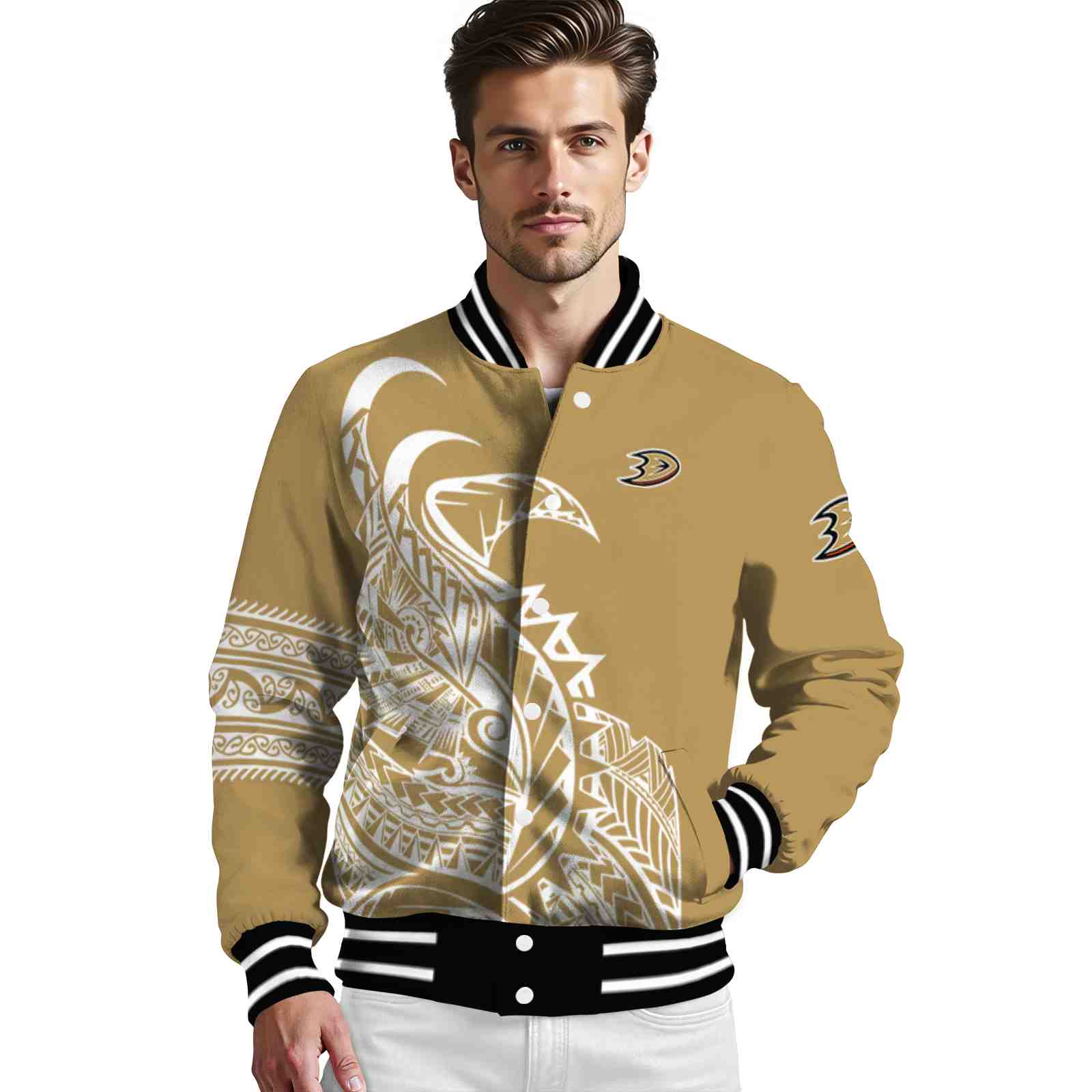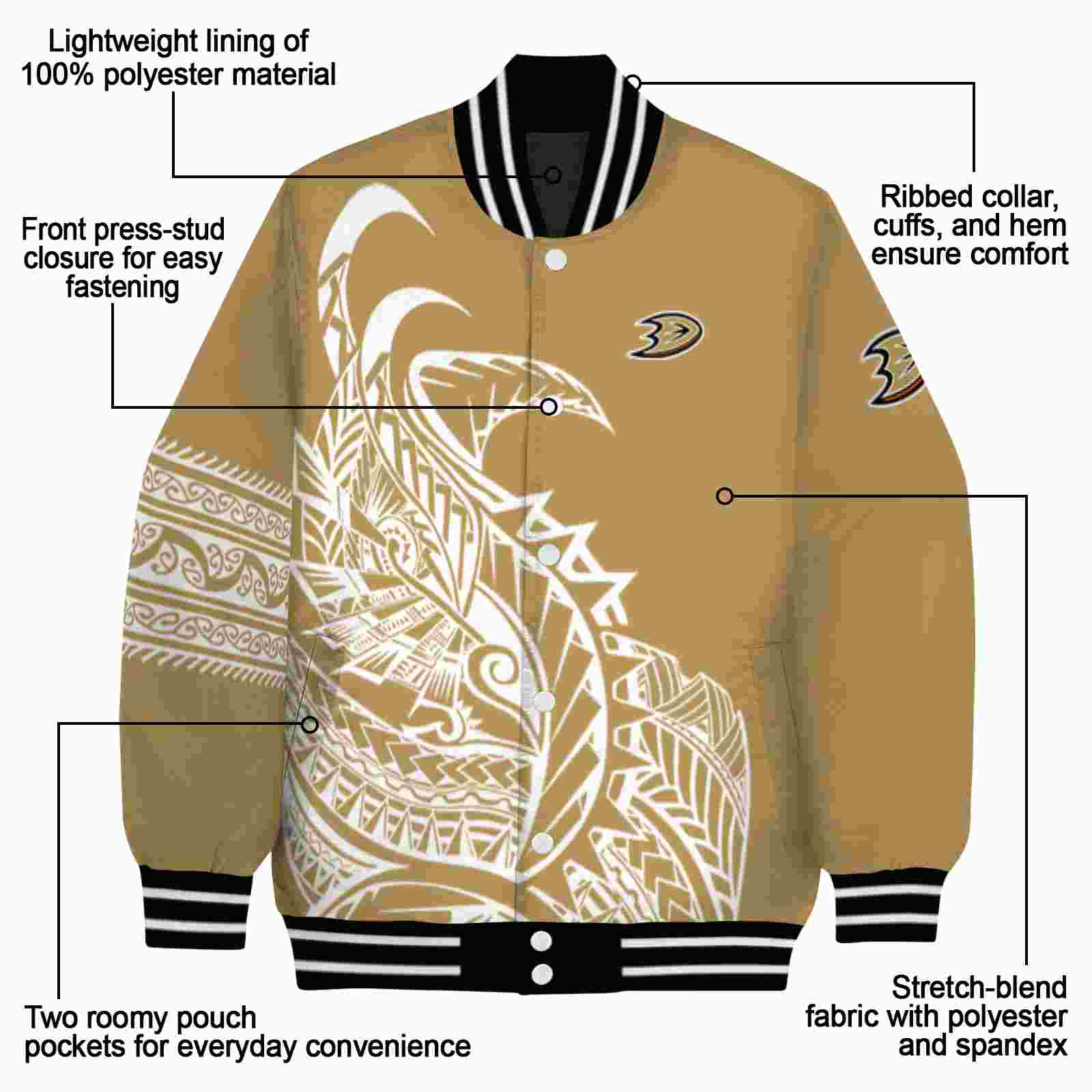 Anaheim Ducks Tribal Art Gold White Black Varsity Jacket