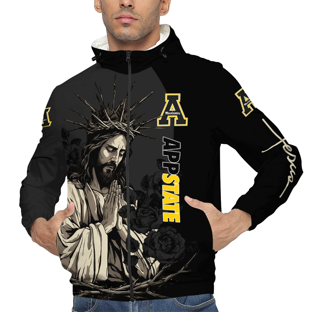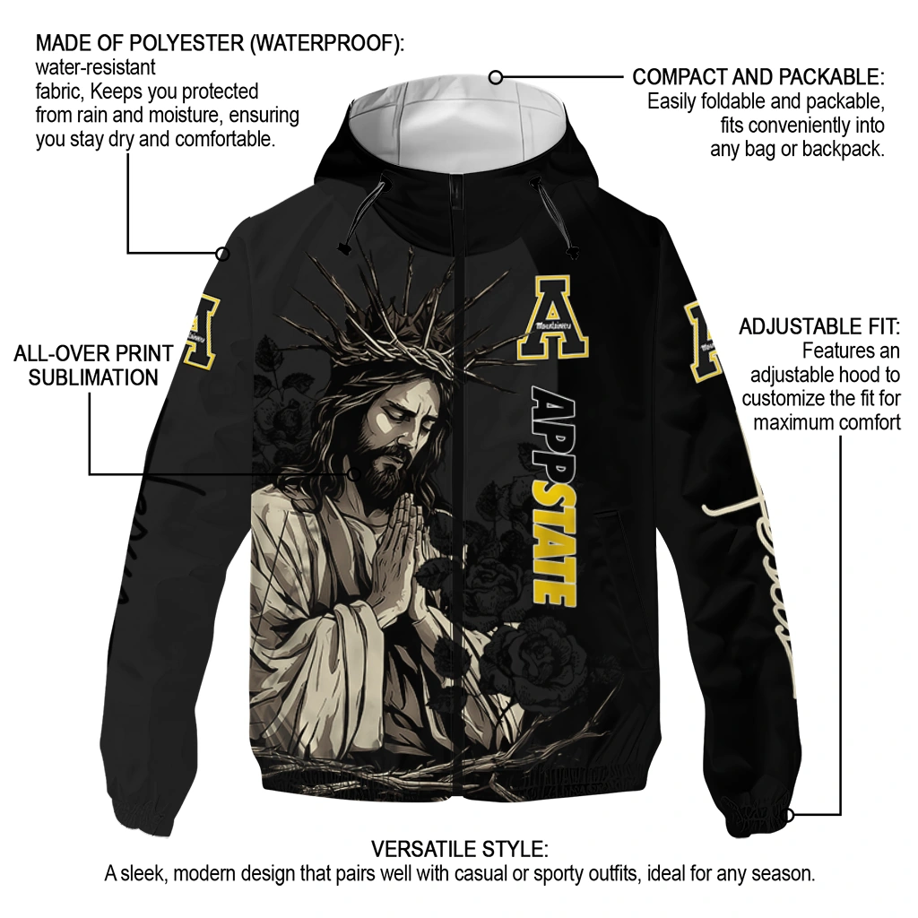 Appalachian State Mountaineers Jesus Roses Black Windbreaker Jacket