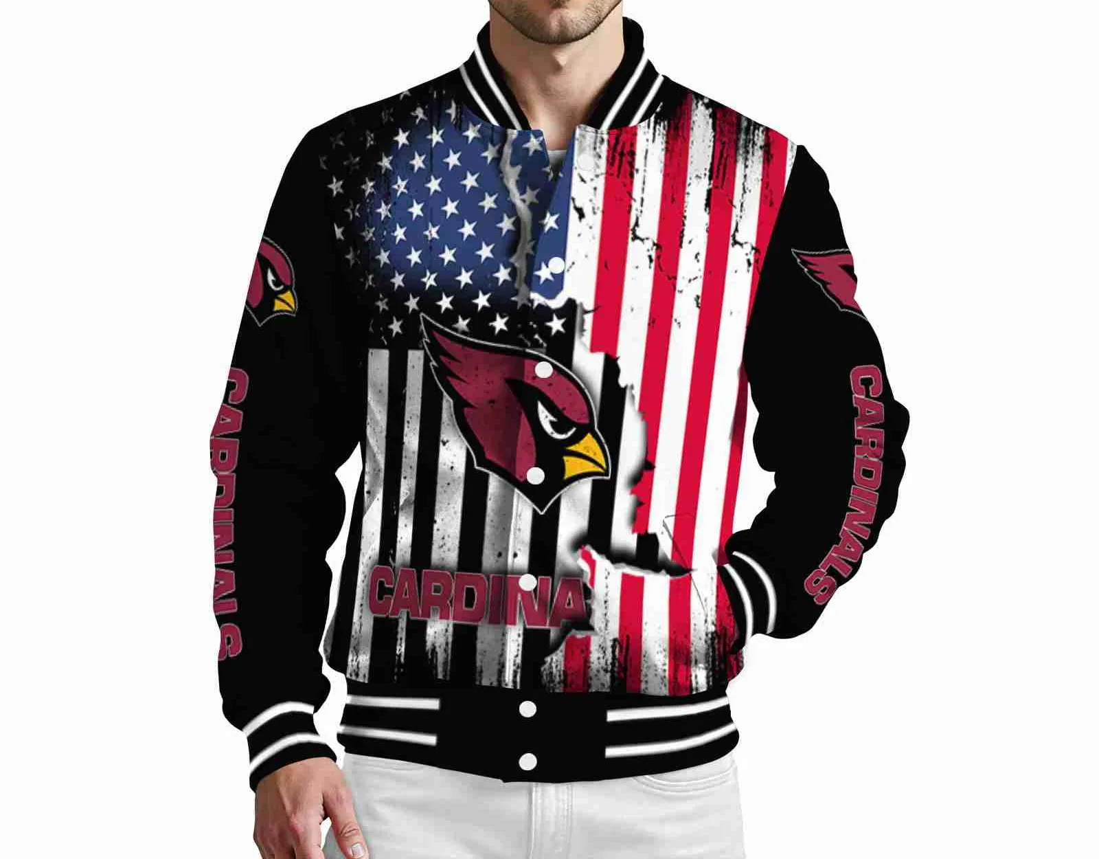 Arizona Cardinals NFL Baseball Jacket Patriotic Theme Black Jacket For Sport Lovers