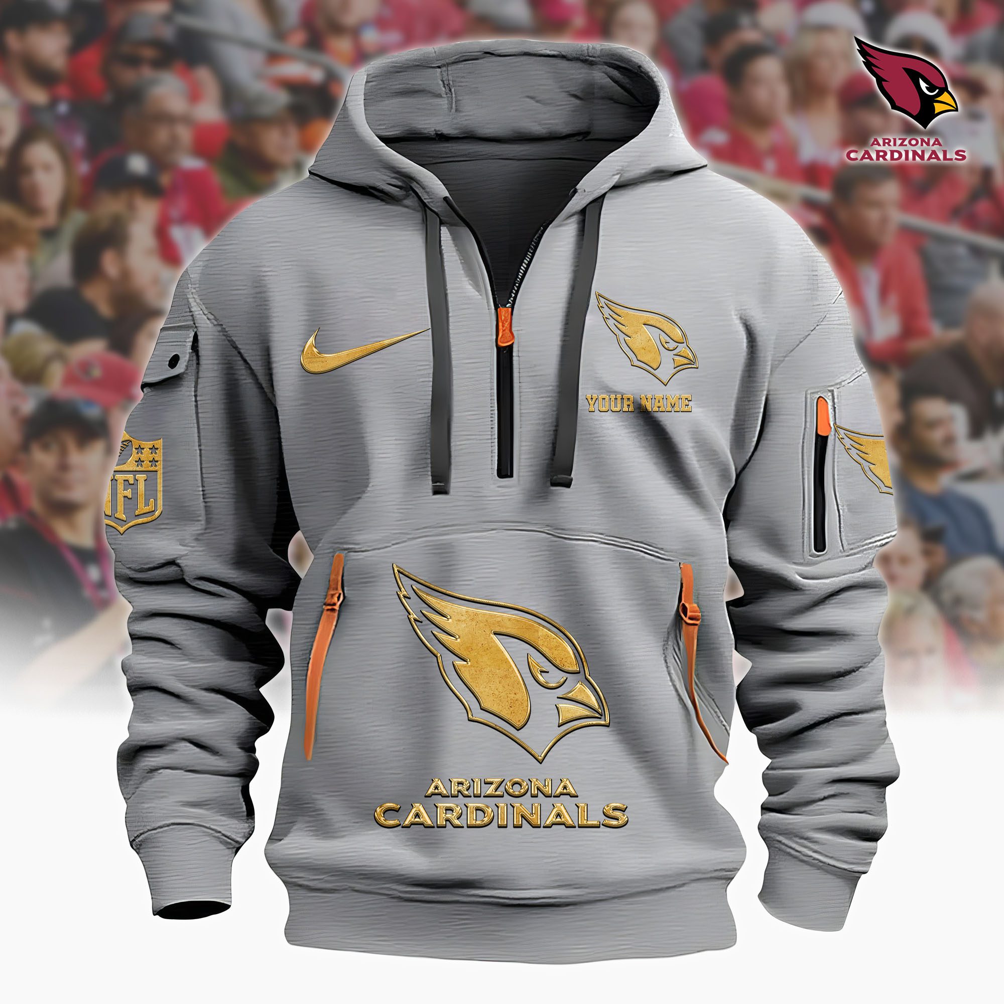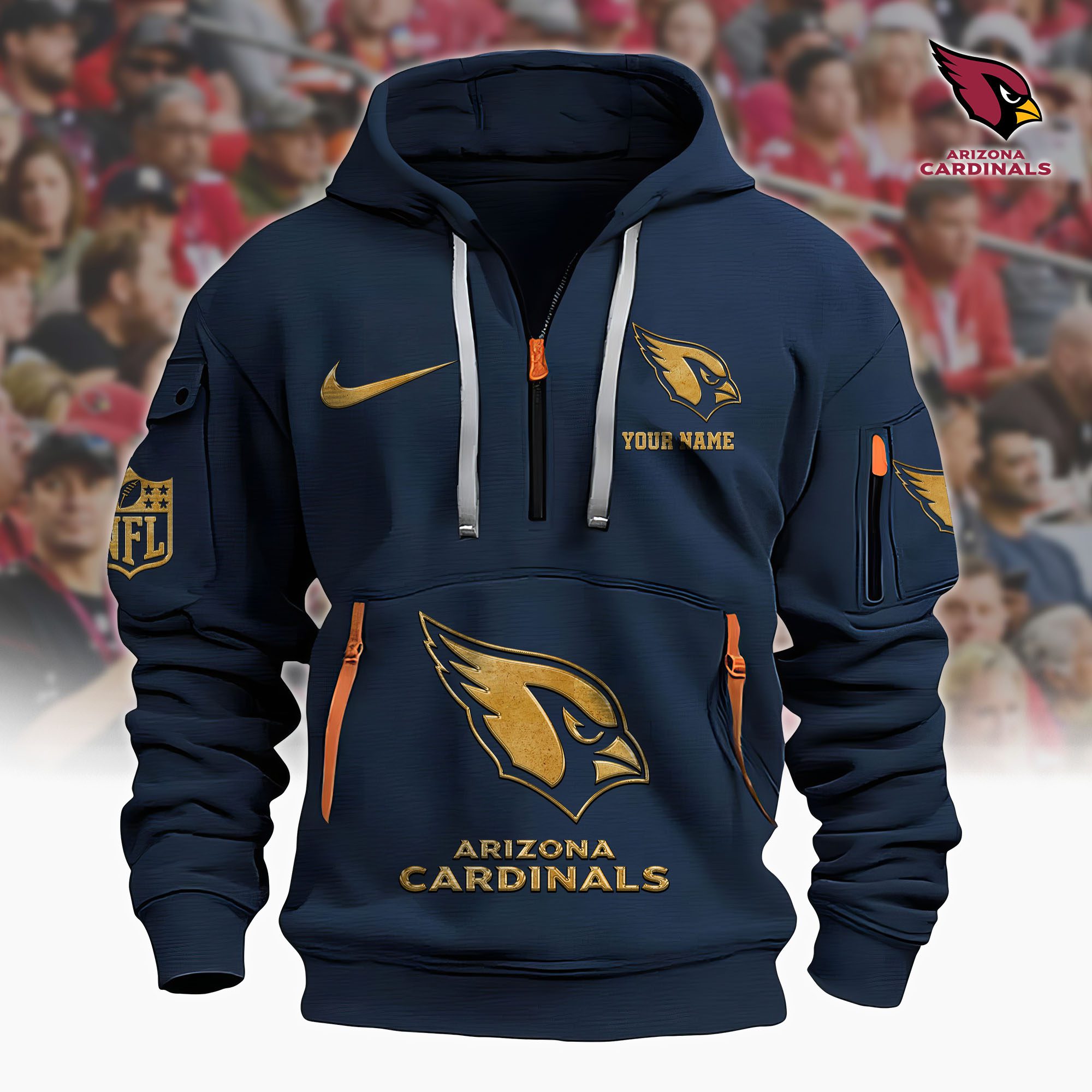 Be the first to review “Arizona Cardinals NFL Custom Your Name Metal Logo Quarter Zip Hoodie”