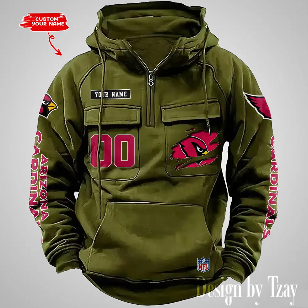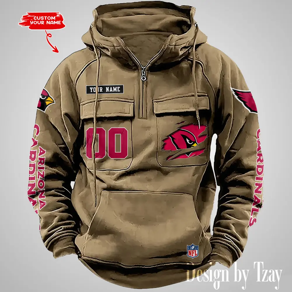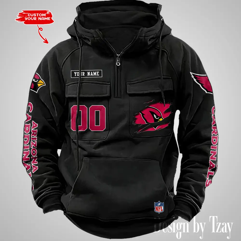 Arizona Cardinals NFL Multi Pocket Zipper Retro Hoodie