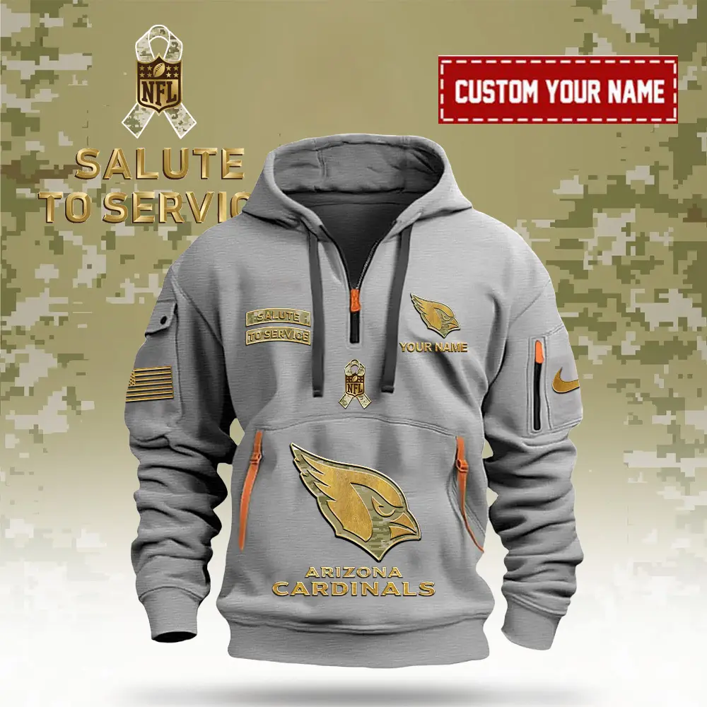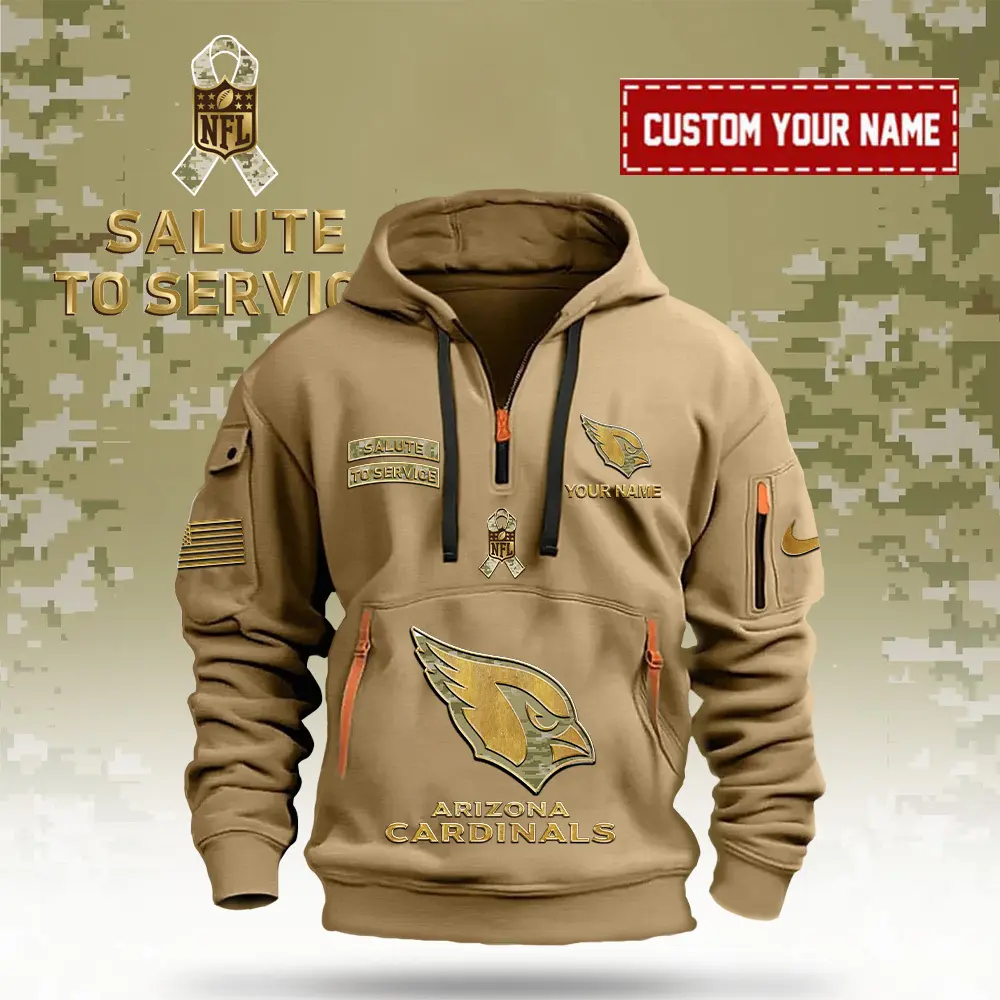Arizona Cardinals NFL Veterans Day Salute To Service Custom Name Quarter Zip Hoodie