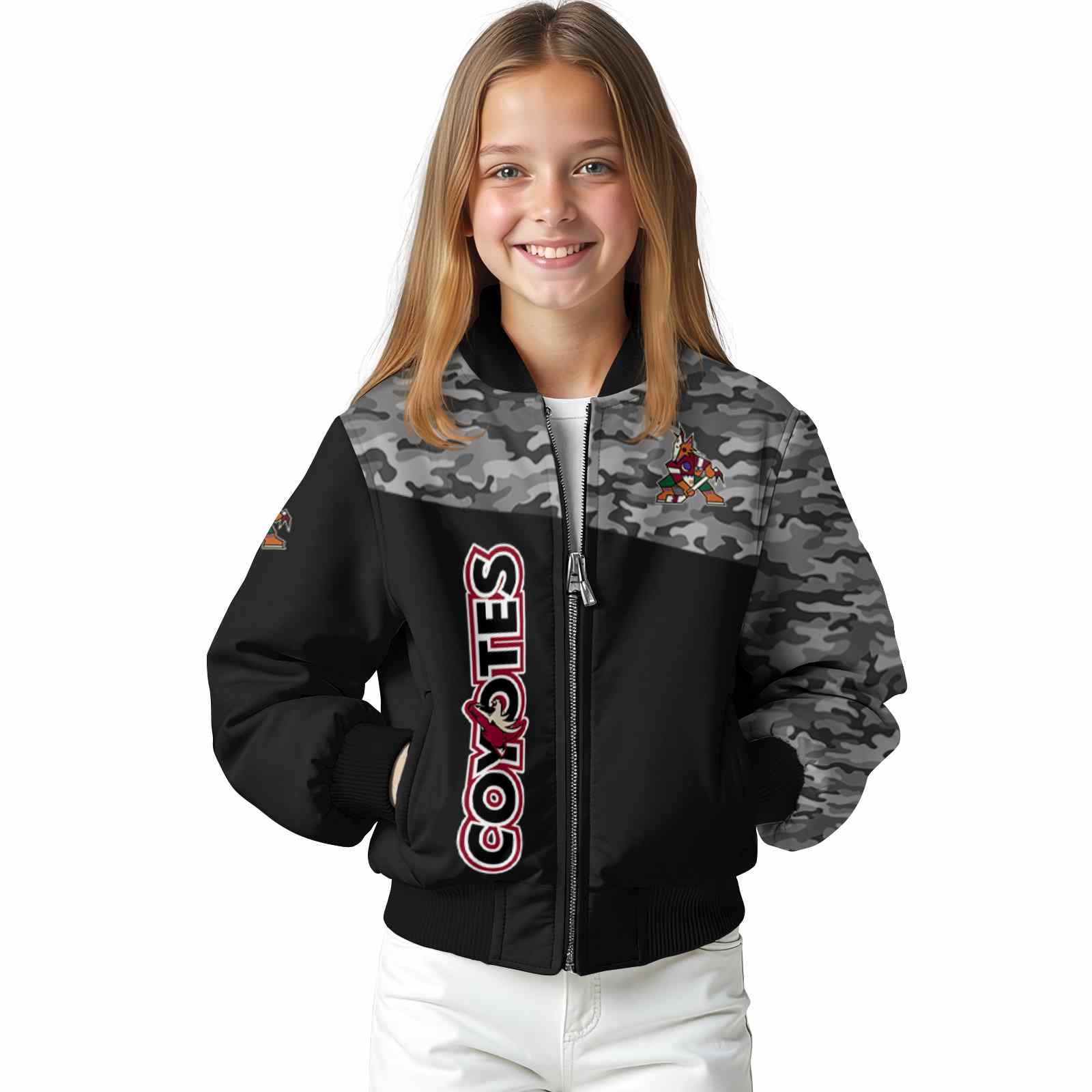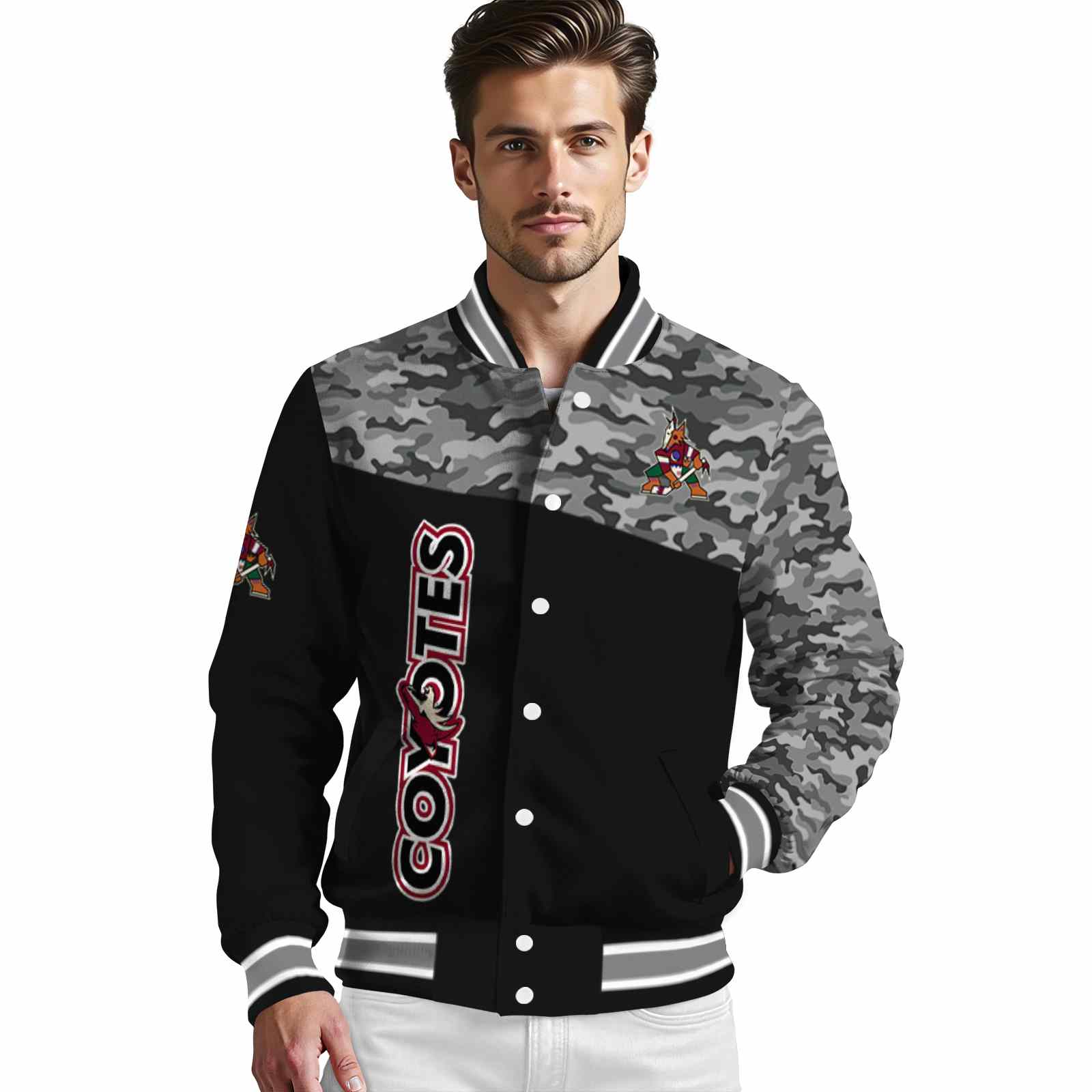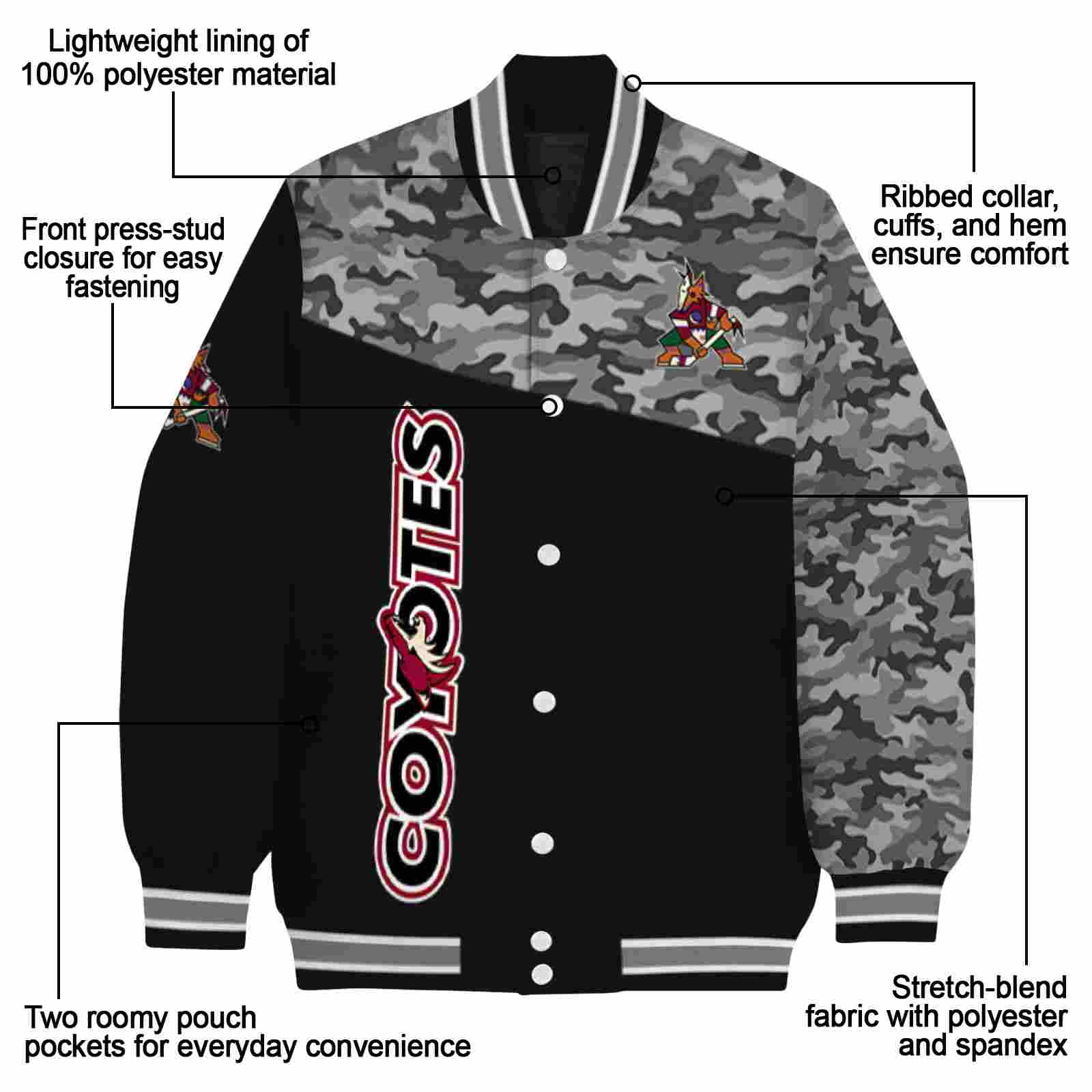 Arizona Coyotes Camo Patchwork Black Varsity Jacket